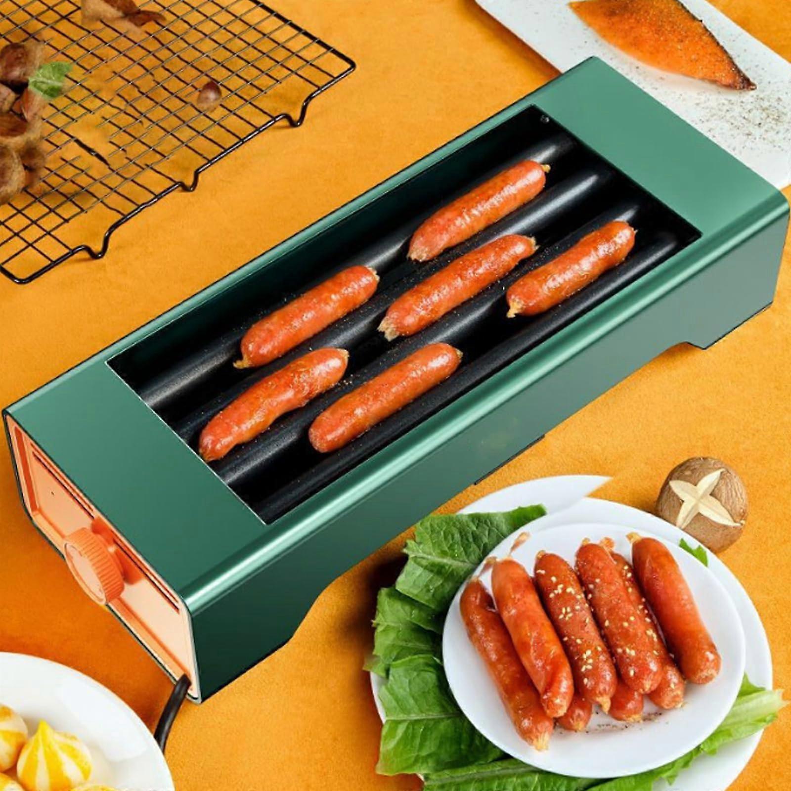 Commercial Hot Dog Roller Grill with 4 Tubes, 360° Baking, Removable Drip Tray, Temperature Control