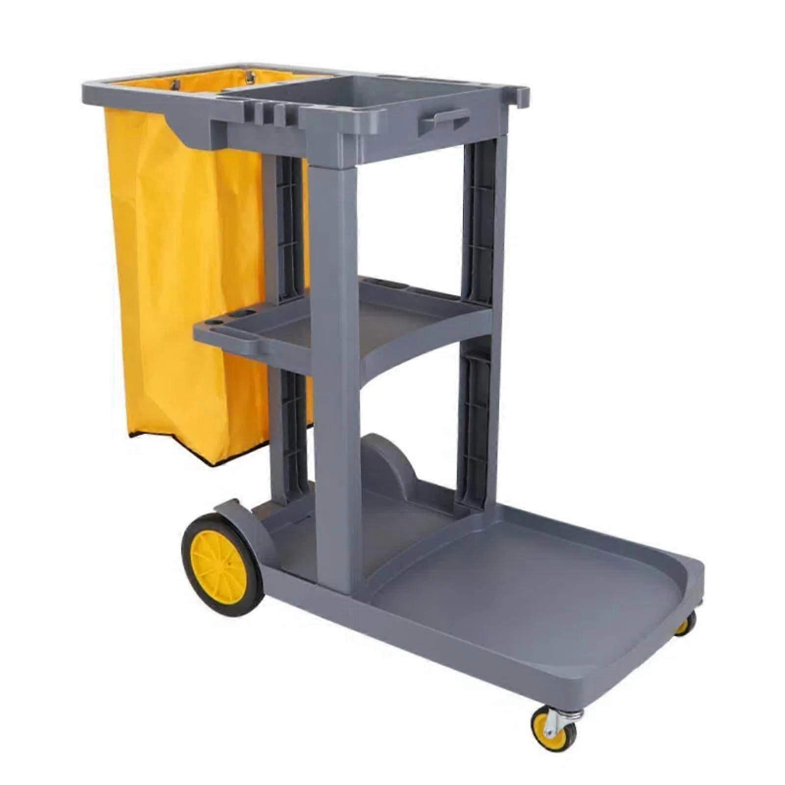 Heavy Duty Cleaning Cart with Detachable Waste Bag and 3Tier Storage for Hotels and Hospitals (Grey)