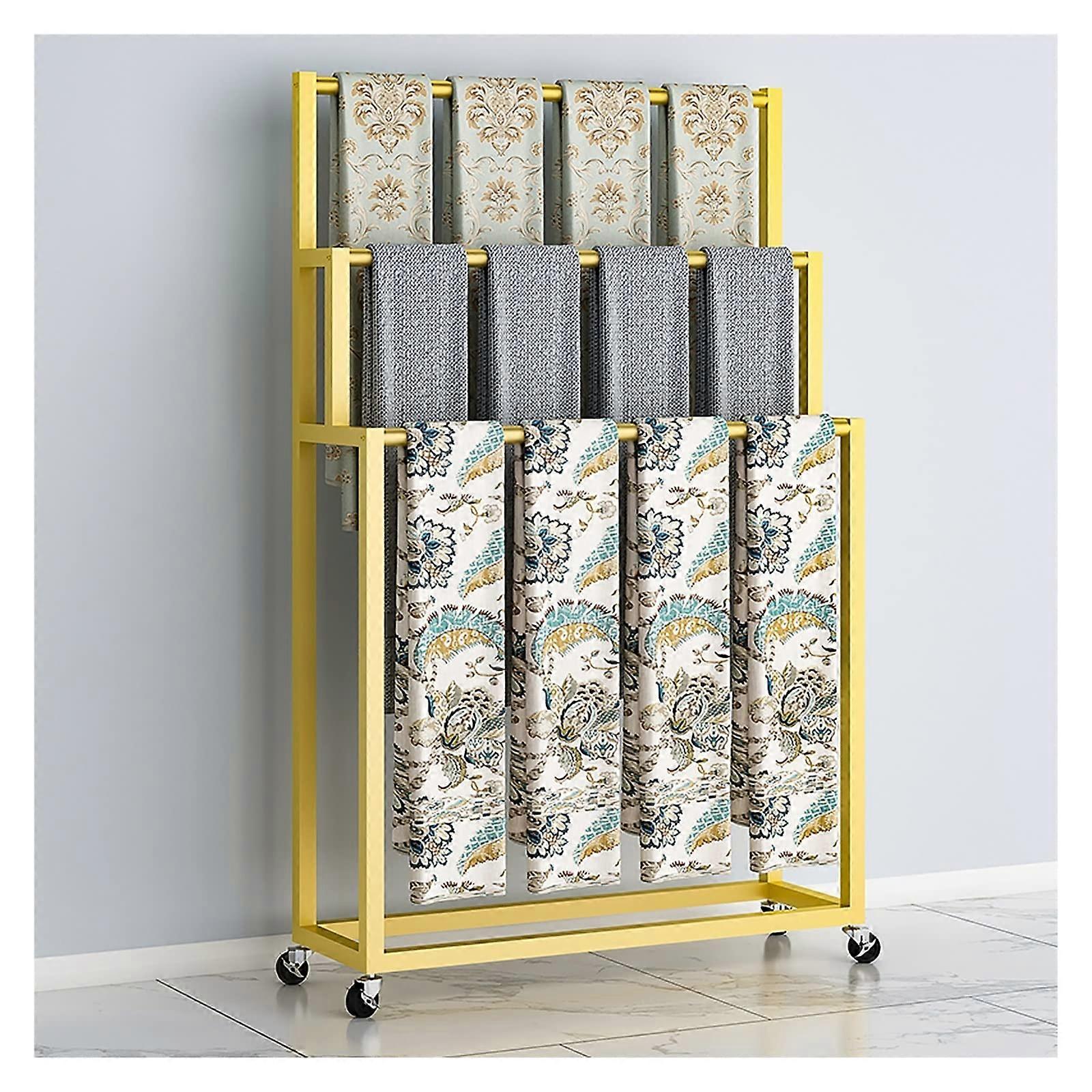 Scarf Display Rack with 26 Hooks, Gold Freestanding Frame, Rolling Clothing Organizer for Retail