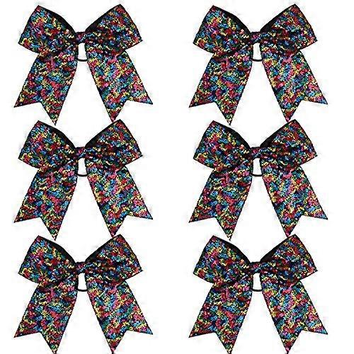 8 Inch Cheerleading Hair Bows with Ponytail Holder, Jumbo Sequin Cheerleader Accessories 6 Pack