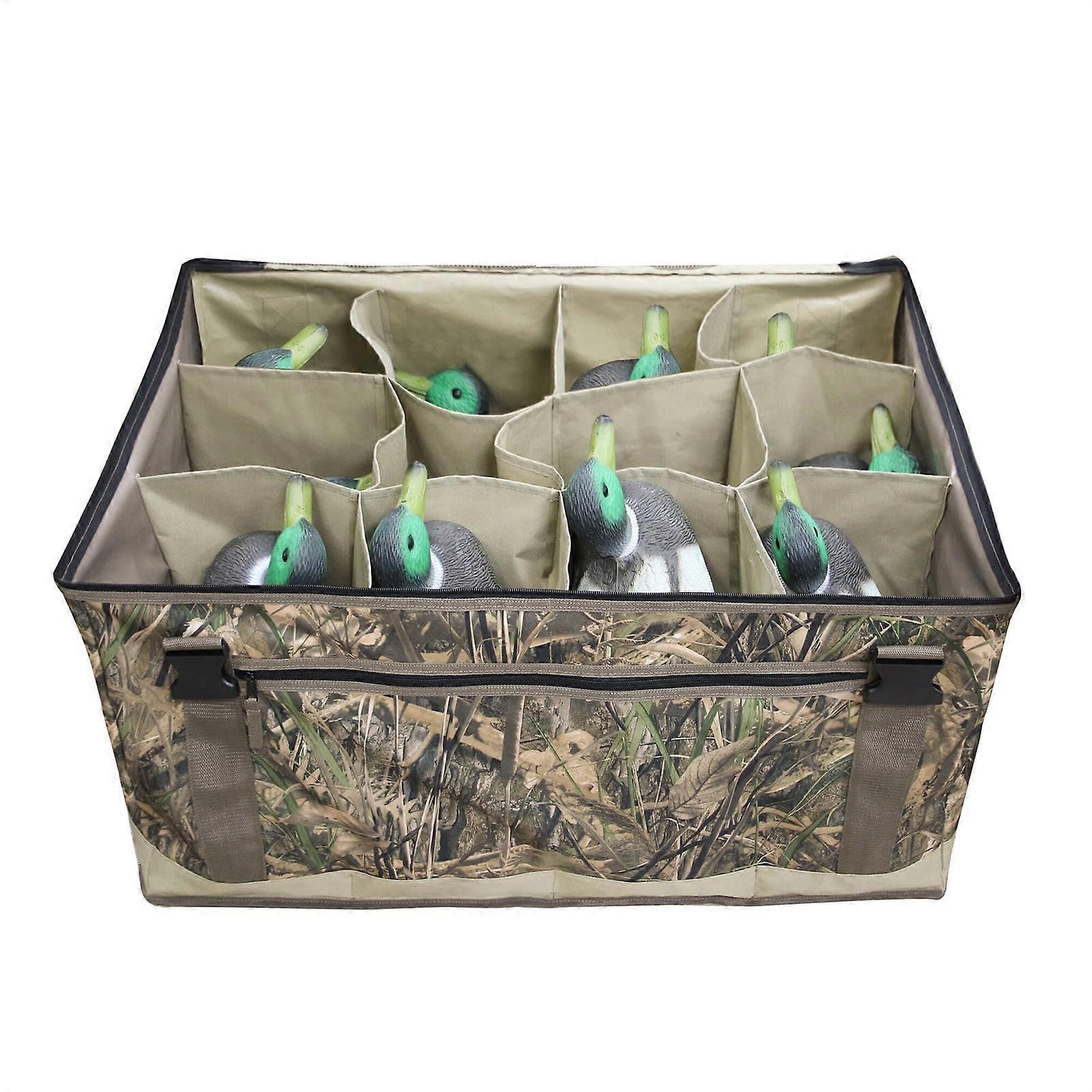 12 Slot Duck Decoy Bag for Hunting, Camouflage Slotted Decoy Storage with Mesh Drainage Bottom and Adjustable Padded Strap