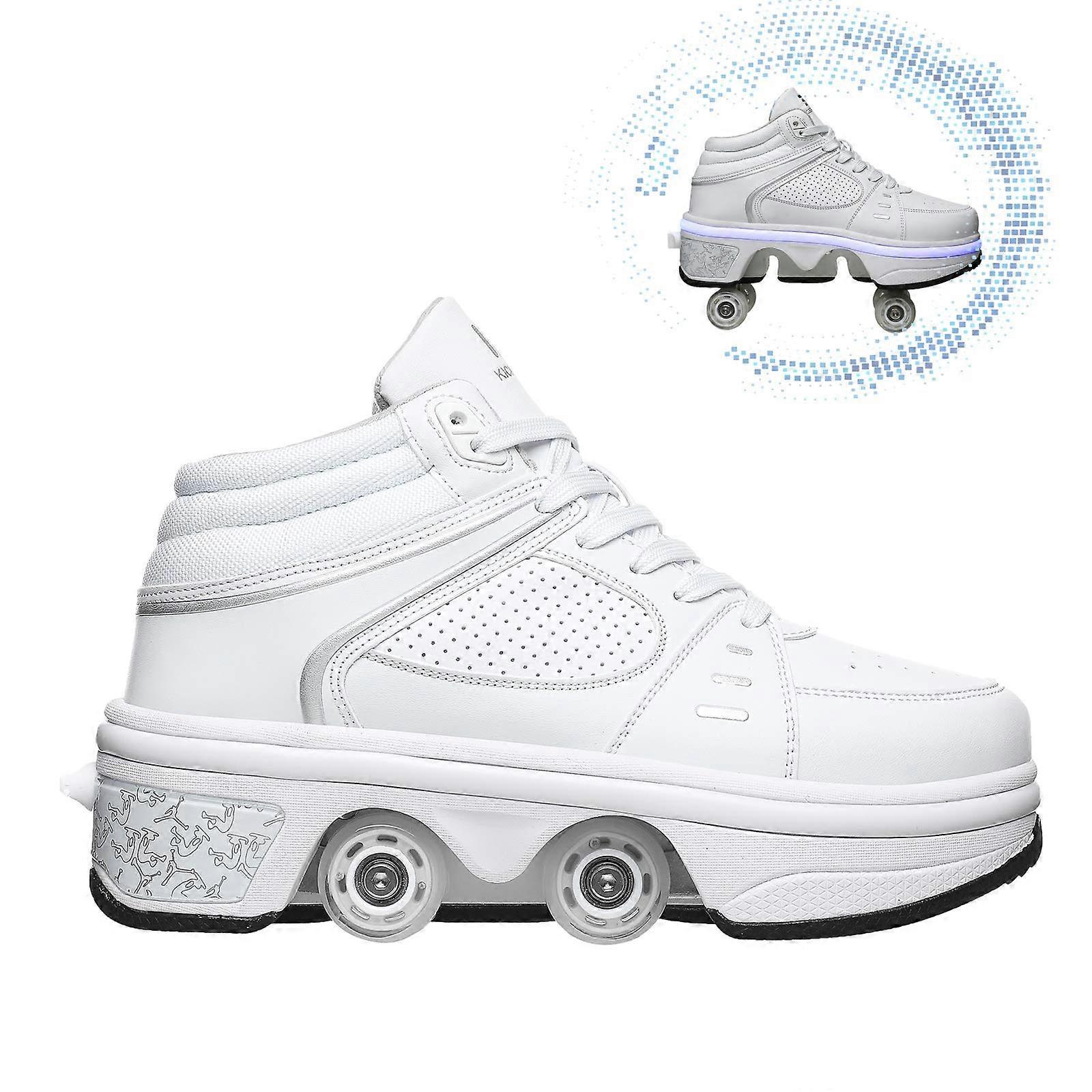 2in1 Roller Shoes with Hidden Wheels, Adjustable Inline Skates with 7Color LED Lights, White EUR40