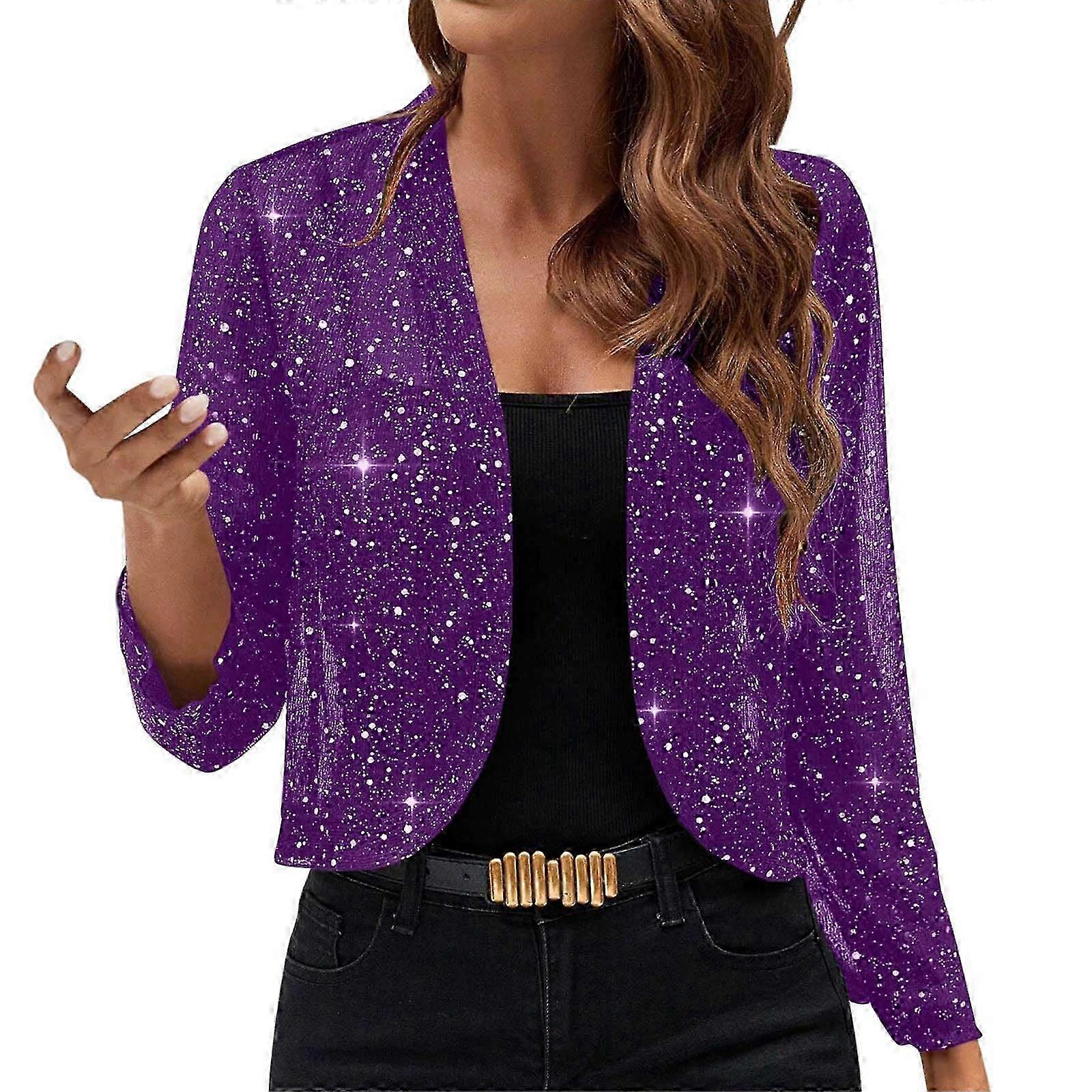 Women's Mesh 3/4 Sleeve Open Front Sequin Bolero Glitter Cropped Cardigan Jacket Cocktail Party Shrug Short Coats Lavender L
