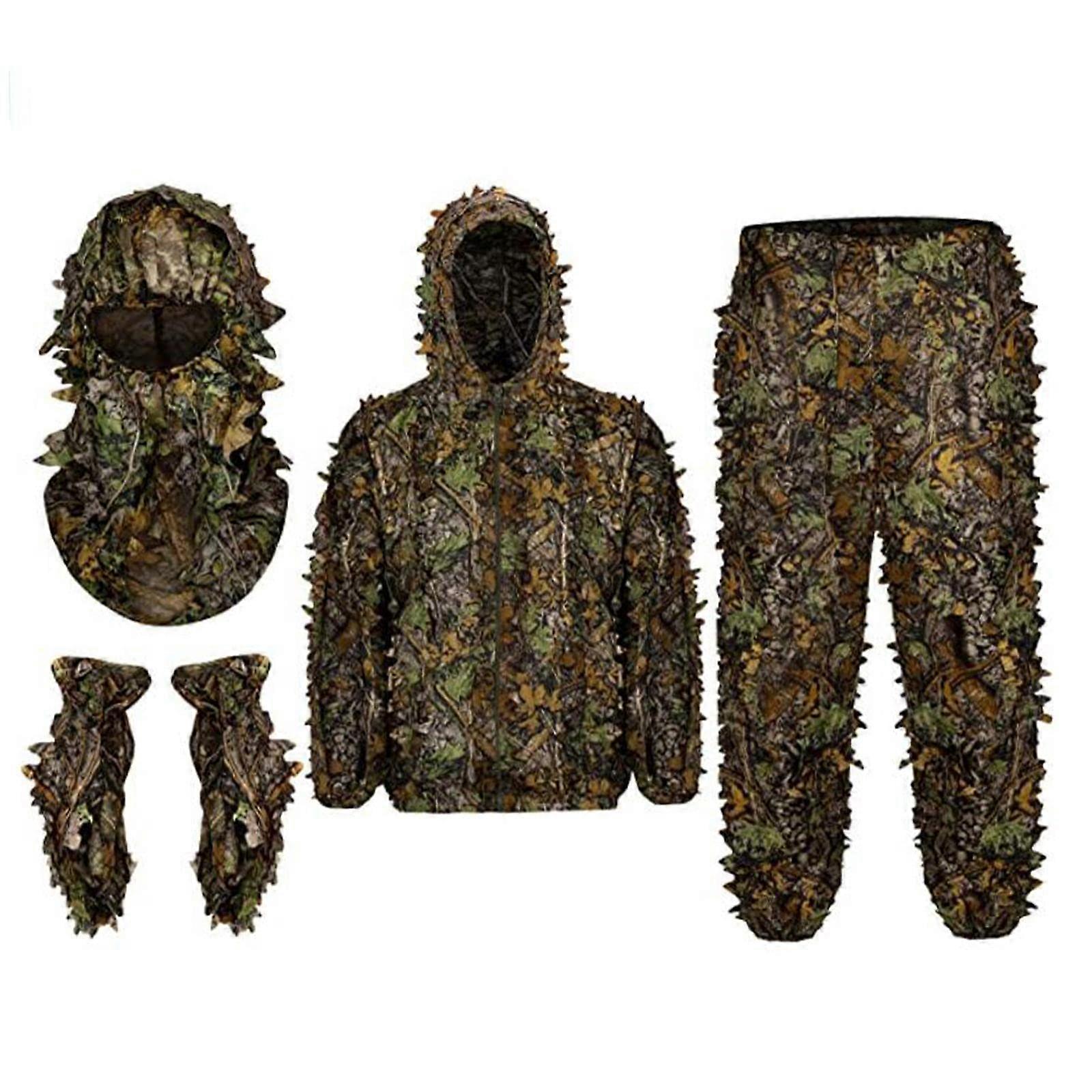 Ghillie Suit 3D Leaf Camo Hunting Outfit with Full Face Mask and Gloves, Lightweight Breathable