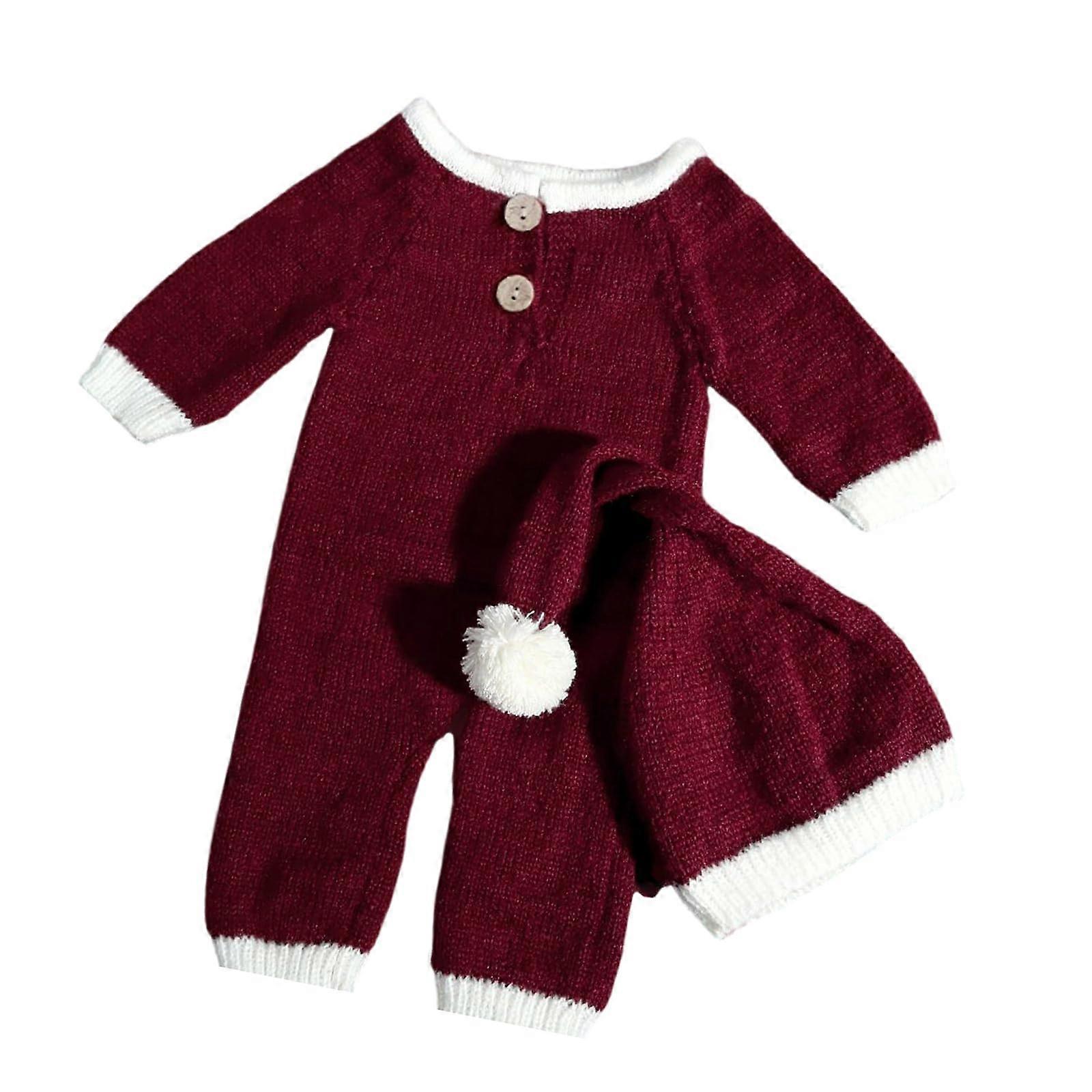 Newborn Christmas Outfit Baby Photography Props Santa Hat Jumpsuit Set Holiday Photo Costume