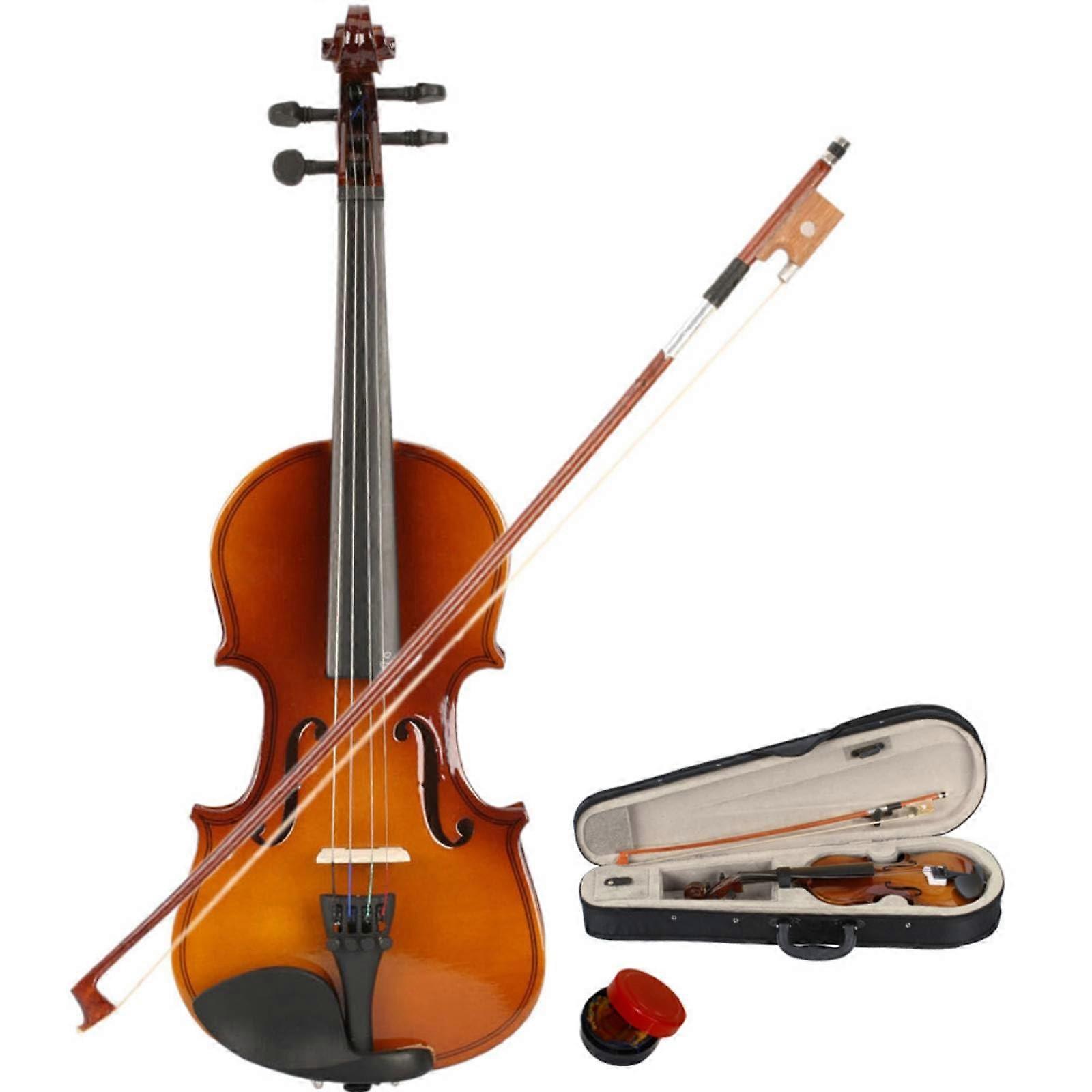 1/8 Acoustic Violin Beginner Set with Case Bow and Rosin, Natural Wooden Kids Student Violin for Learners