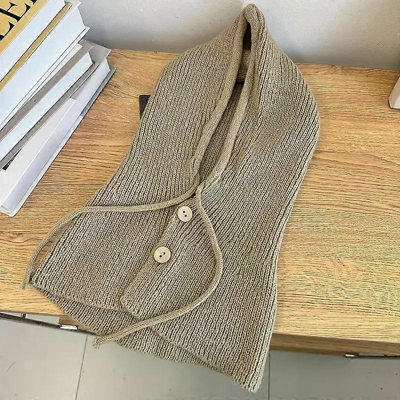 Women Knitted Hooded Scarf Hat Winter Warm Ear Protection Cap Cold-proof Neck Cover Mask For Cycling Skiing Hiking Camping