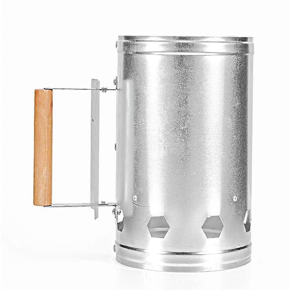 QIYUDS Heavy Duty Charcoal Chimney Starter with Wooden Handle, Silver Metal Charcoal Starter for Fast BBQ Ignition