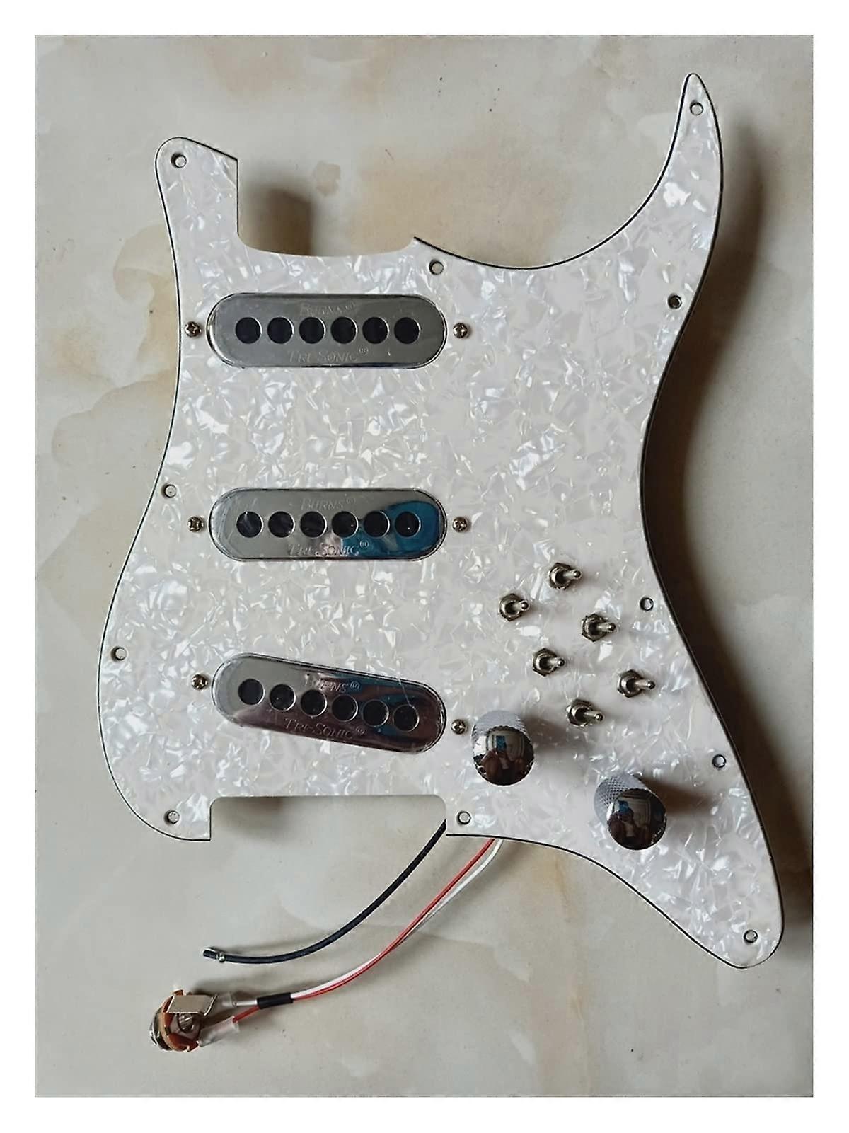 Prewired TriSonic Pickups Welding Wiring 1 Set Yellow Pearl Description This prewired pickguard and pickup set reproduces the classic TriSonic voice while fitting modern doublecut electric guitars without major routing. The compact TriSonic casings house condensed internals that deliver thick, ringing mids and smooth sustain, plus the flexibility to access traditional single coil clarity and warm humbucking tones. The set is prewired for quick installation and designed to reduce noise for clean switching between pickup combinations. Key benefits Classic TriSonic tone in a compact, installfriendly package. Thick mids and long sustain without enlarging pickup cavities. Prewired for easy installation and reliable signal capture. Minimizes soldering time and simplifies replacement or upgrades. Noiseless operation and clear, balanced tone when using the pickup switches and phase controls. Versatile tonal control with on/off and phase mini toggles for each pickup, plus master volume and tone controls for fine adjustment. Specifications Model: Prewired TriSonic Pickups Welding Wiring Color: 1 Set Yellow Pearl Material: 3 Alnico TriSonic pickups Resistance: Neck 6.02K, Middle 6.05K, Bridge 6.05K (K values are reference and may vary with temperature) Controls: On/off and phase mini toggles per pickup, 250K master volume, 250K master tone Components: Chrome knobs, 0.473J orange drop capacitor, output interface Accessories: 11 screws included Weight: 550 g per set Compatibility: Designed for doublecut electric guitar series. Verify pickguard shape and screw layout before installation. What makes it stand out Condensed TriSonic design preserves the original 60s character while fitting modern pickguard and body routes. Full switching and phase options for expanded tonal combinations without sacrificing noise performance. Prewired assembly streamlines installation and reduces wiring errors for hobbyists and techs alike. Use scenarios Upgrade a doublecut electric guitar to achieve vintage TriSonic mids and sustain without modifying body cavities. a worn pickguard and pickups for live performance where noiseless switching and tonal flexibility are required. Record in the studio and dial precise tones with on/off and phase toggles plus master volume and tone for a variety of textures. Installation notes The set is supplied prewired for faster installation. Confirm pickguard dimensions and screw hole locations match your instrument before fitting. Resistance values are provided as reference. Final tonal character will depend on your guitar wood, bridge, and electronics.
