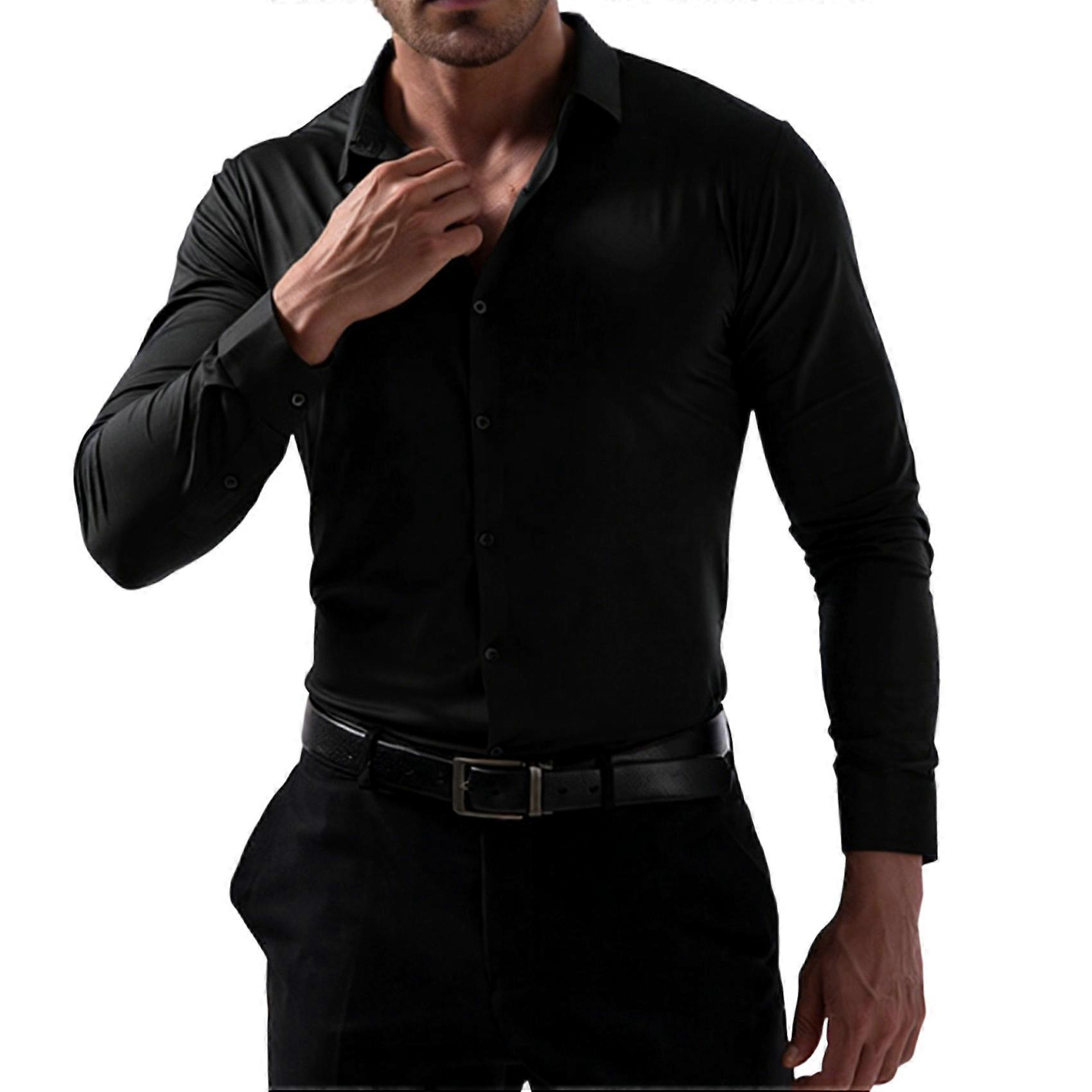 Mens Dress Shirts Slim Fit Button Down Long Sleeve Stretch Collared Cotton Shirt Black XS