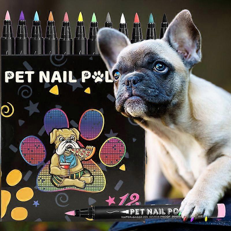 Dog Nail Polish Pens Quick-Drying, 12-Color Safe Dog Nail Polish Set. Ideal For Diy Nail Art. Safe And Easy To Apply. Suitable For Bright And Dark Nai