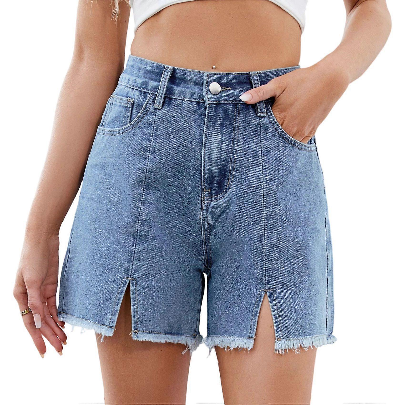 Jean Shorts for Women High Waisted Stretchy Casual Denim Shorts Front-Slit Frayed Hem Summer Trendy Jorts Light Blue M