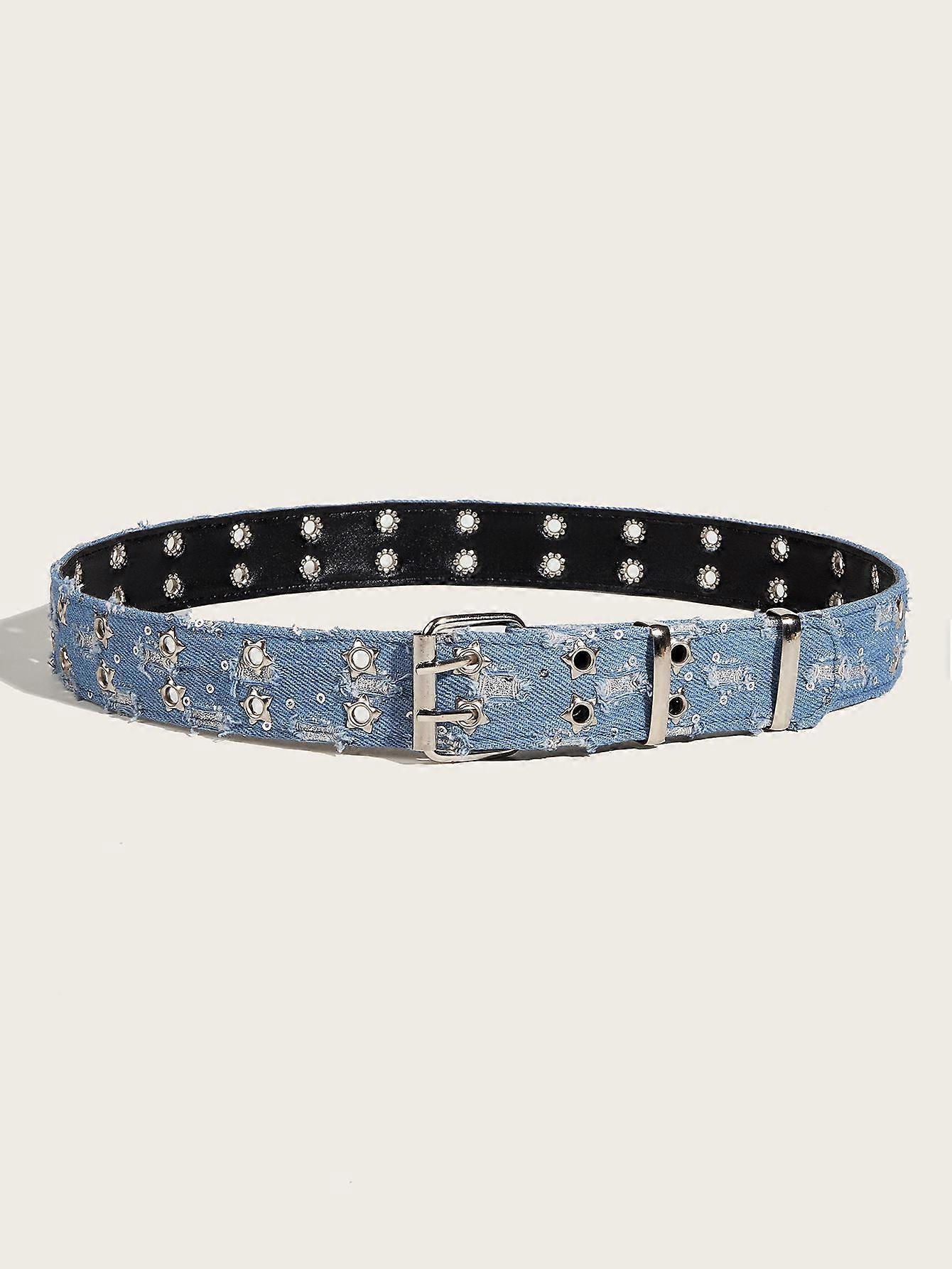 HipHop Y2k Star Hollowed Pin Buckle Waistband Black Punk Belt Men Women Fashion Luxury Blue Denim Girdle Pants Accessories