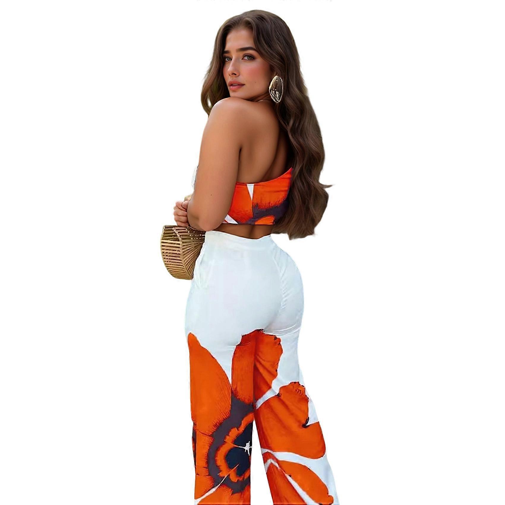 Women'S Chic Two Piece Outfits for Club and Birthday with One Shoulder Crop Top and Wide Leg Pants Orange XXL