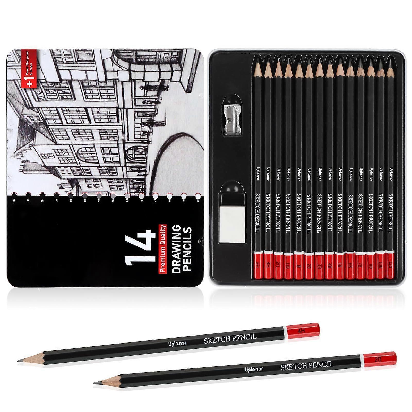 Sketching Pencils Set 14 Professional Drawing Pencils with Graphite and Charcoal, Erasers and Sharpeners for Artists