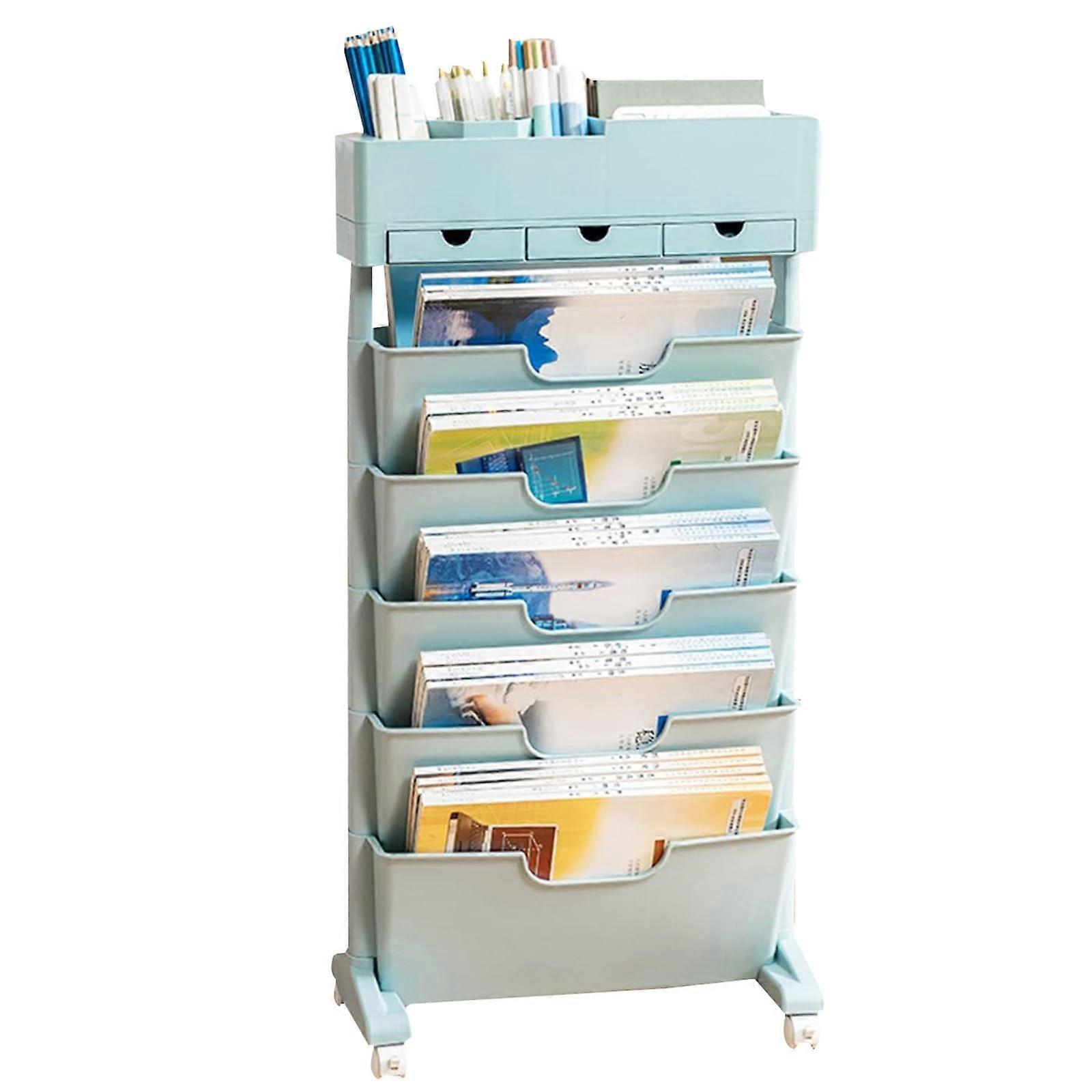 6 Tier Rolling File Cart with Lockable Wheels, Slim Mobile Bookshelf for Office Classroom Storage