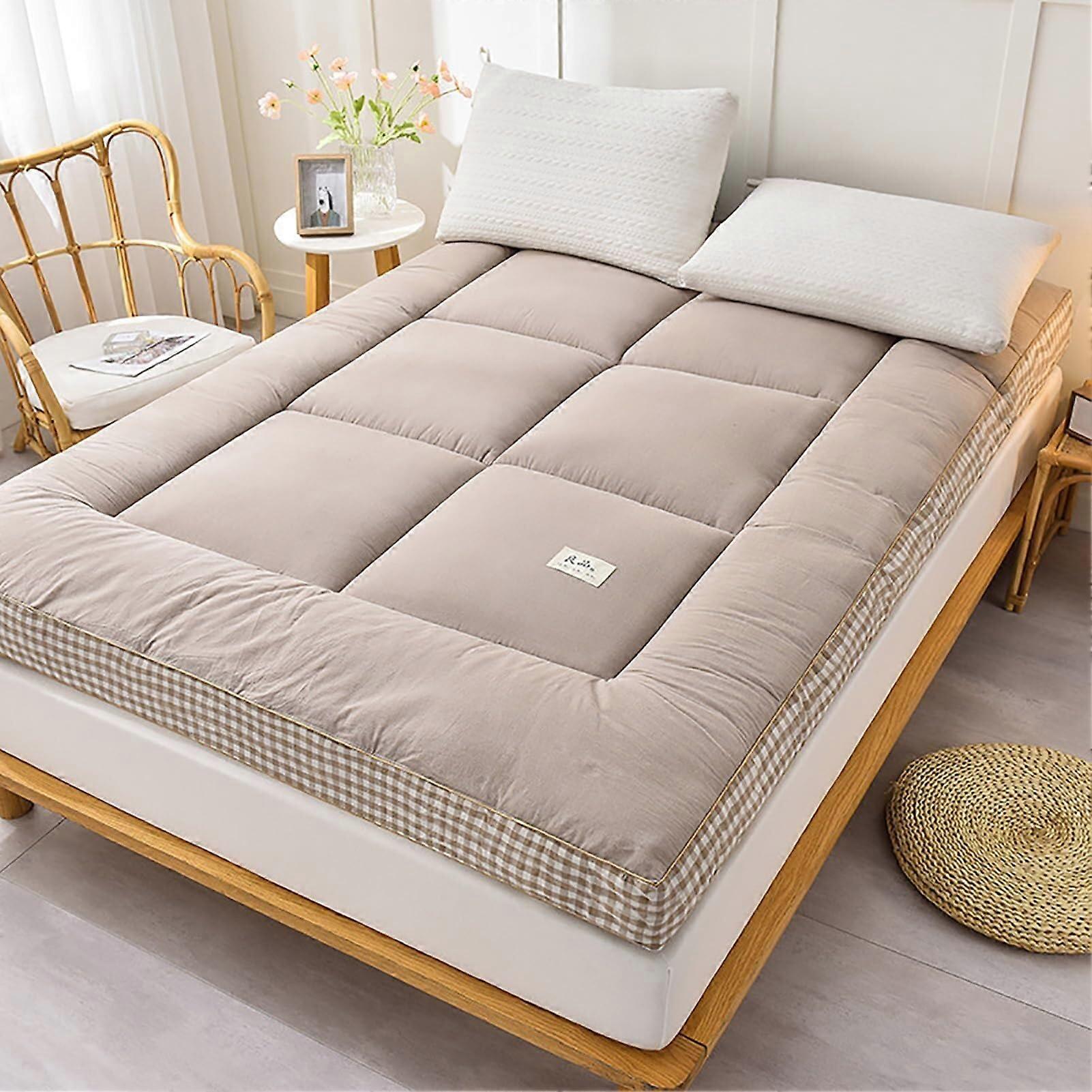 Japanese Futon Mattress for Floor Sleeping, Thick RollUp Tatami Pad with Ergonomic Body Support, Khaki 150x200cm