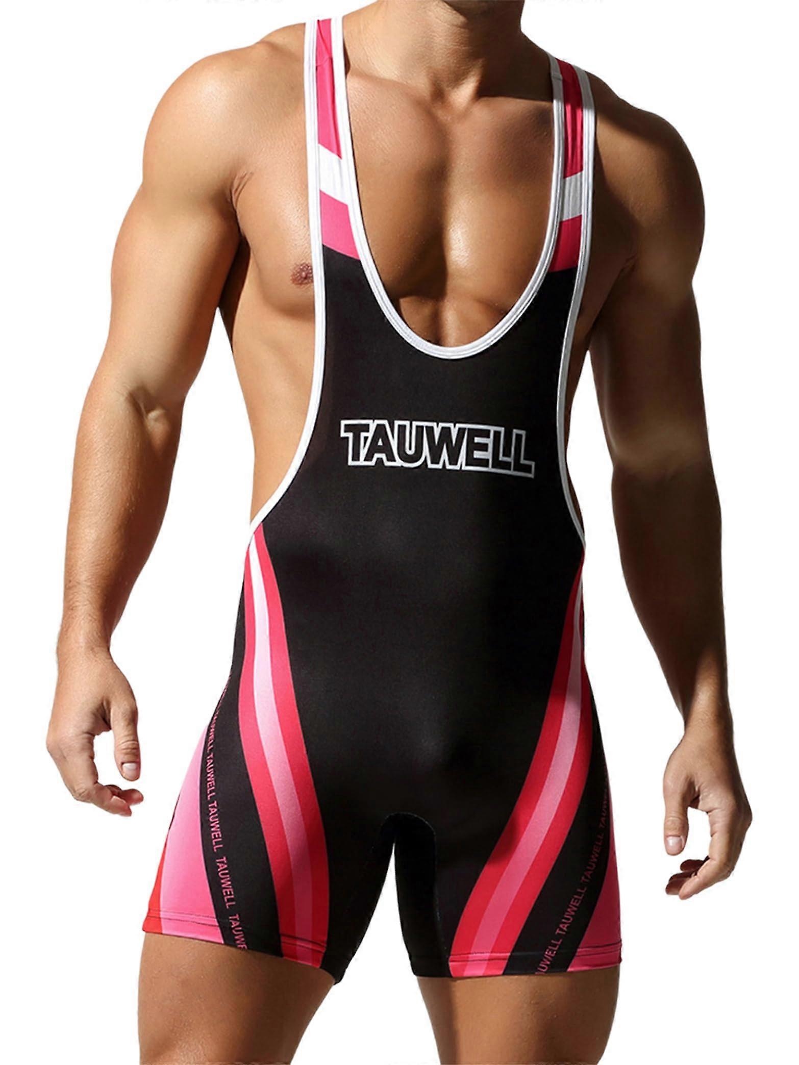Mens Wrestling Singlet Hot Pink Sports Leotard One Piece Stretchy Jumpsuit for Versatile Use L
