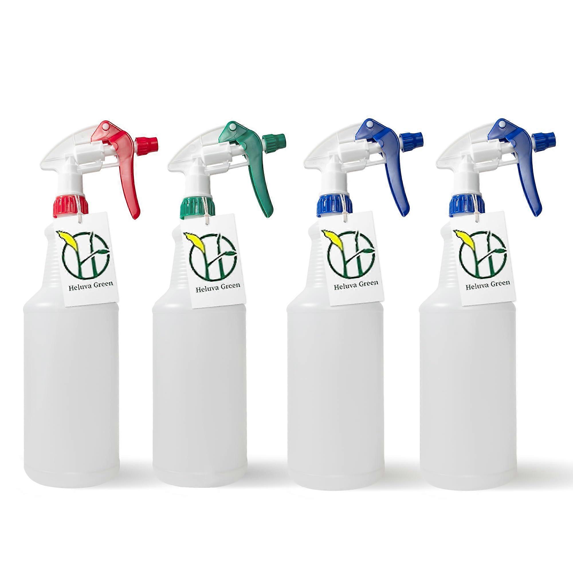 32 oz Heavy Duty Spray Bottles with Adjustable Nozzle for Cleaning and Gardening, 4 Pack