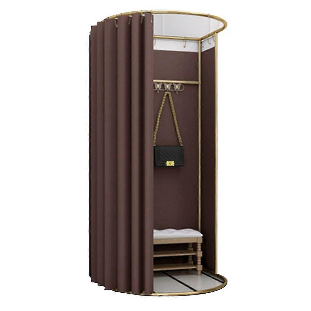 Portable Privacy Fitting Room with Full Coverage Curtain and Stable Steel Frame for Clothing Stores Brown