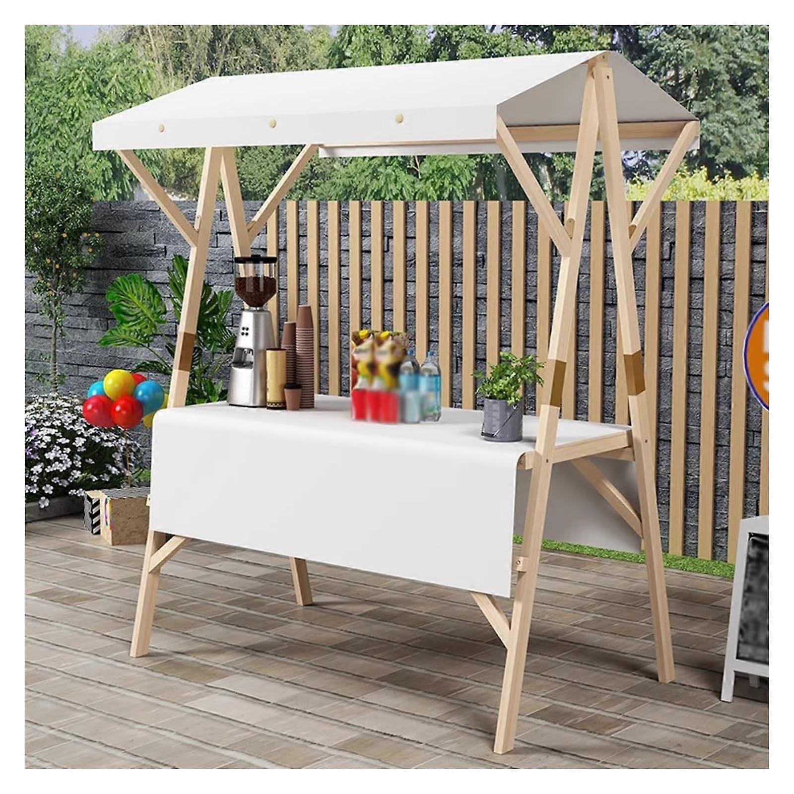Portable Wooden Food Cart with Wheels and Canopy, Foldable Outdoor Market Stall for Events
