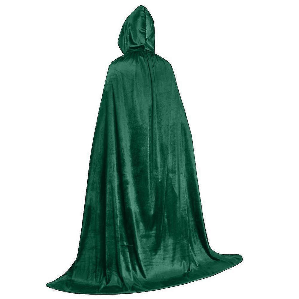Halloween Cape Full Length Hooded Velvet Vampire Cloak for Adult Cosplay Party Green 0.7m