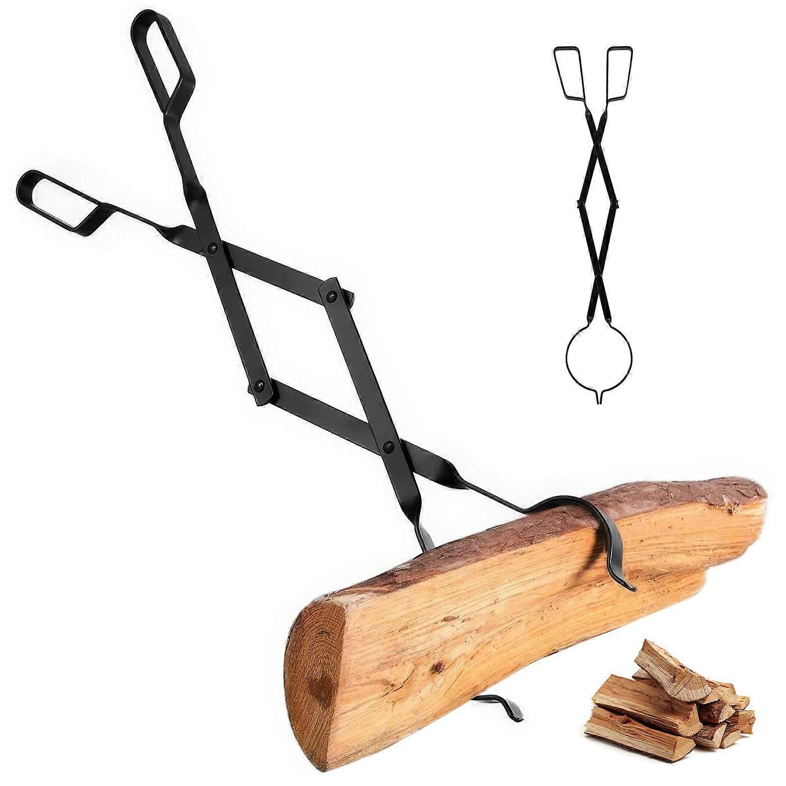 26 Inch Heavy Duty Fireplace Tongs with Curved Tip Grip, Foldable Fire Pit Log Handling Tool