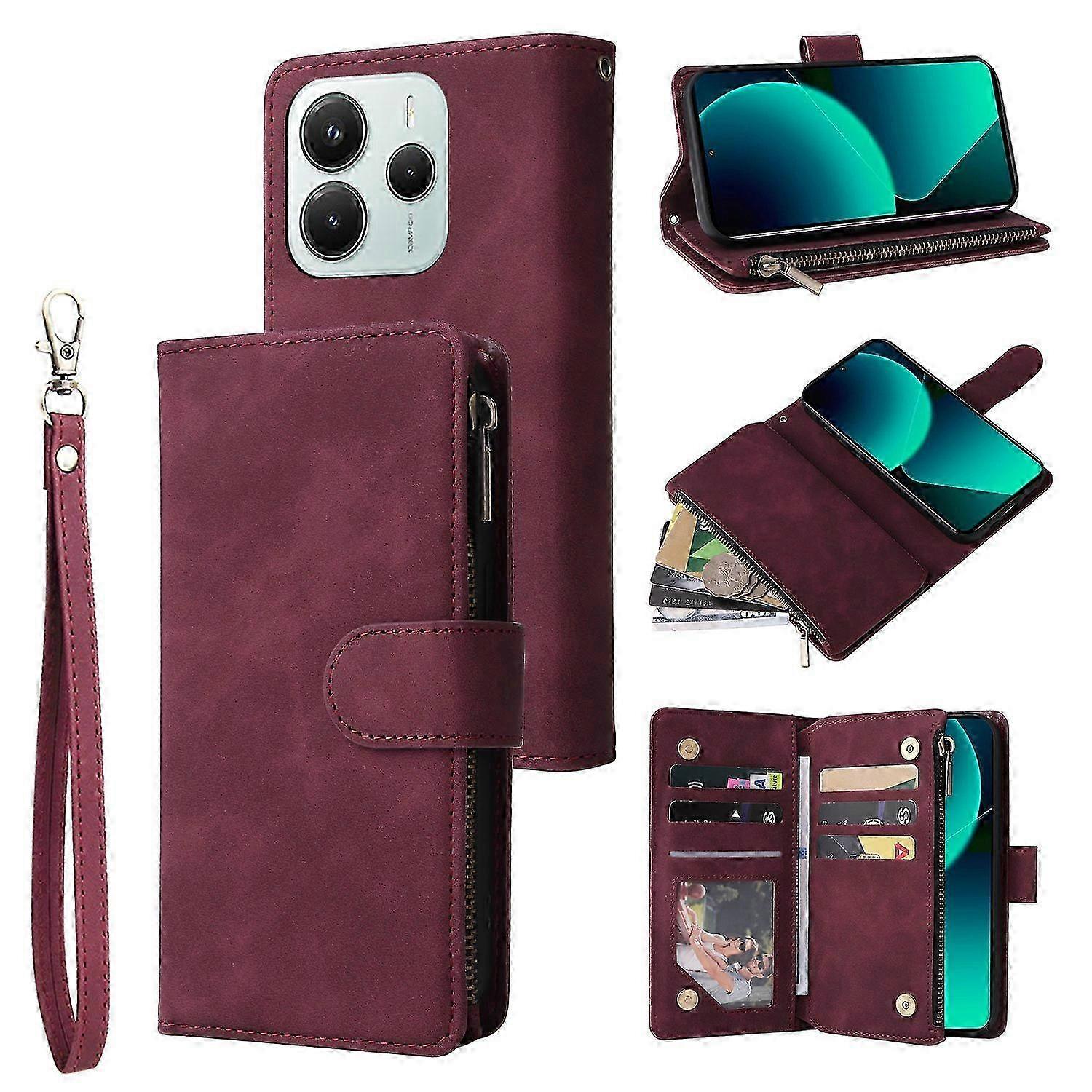 For Xiaomi Redmi Note 14 5G Case Zipper Wallet Multiple Card Slots Leather Phone Cover-pxrb