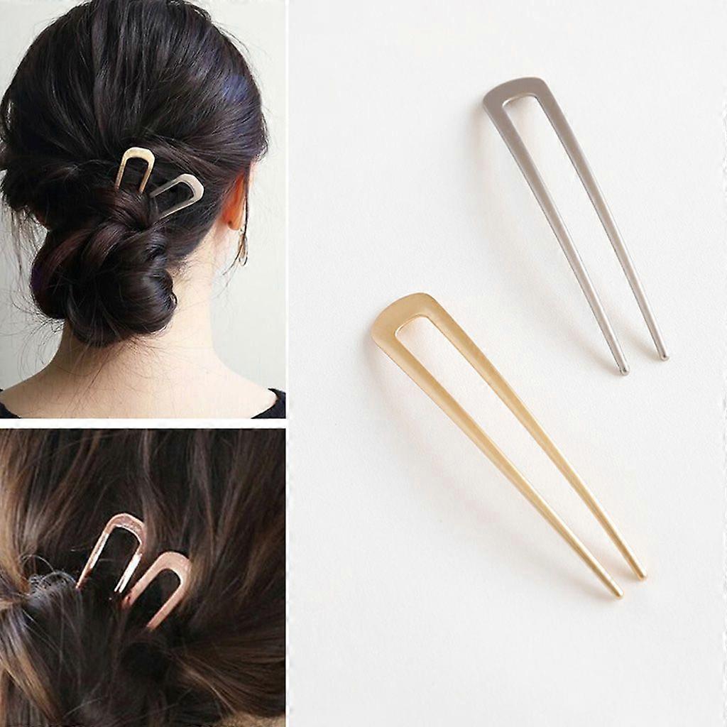 Chinese Style Metal U Shaped Hair Stick Fork Clip Minimalist Vintage Hanfu 2