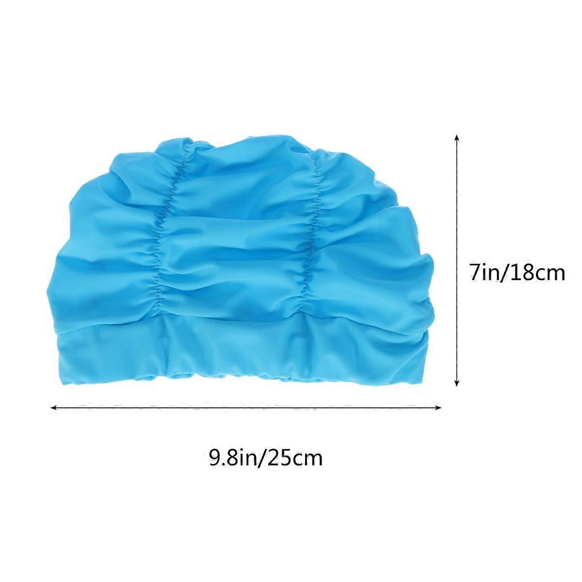 Description Are you still worried about protecting your hair from getting wet while swimming? Pleated ladies long hair swimming cap with large pleats. Pleated design, smooth and comfortable swimming cap is the perfect accessory, suitable for you to wear on the beach or swimming pool this summer. Feature - Dimensions: about 24 x 17.5 x 0.3. - color: blue. Material: Nylon. - hair and ears when swimming. - Reminder: Dear buyers, due to lighting effects, display brightness, manual measurement, etc., there may be some slight differences in color and size between photos and actual items. I sincerely hope you can understand!! Packaging includes 1 x swimming cap
