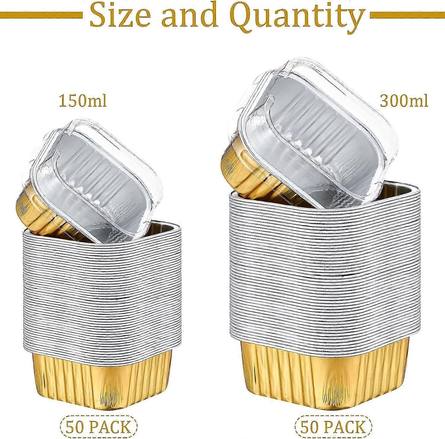 100 Pcs Aluminum Foil Baking Cups with Lids, 10oz & 5oz Disposable Dessert
