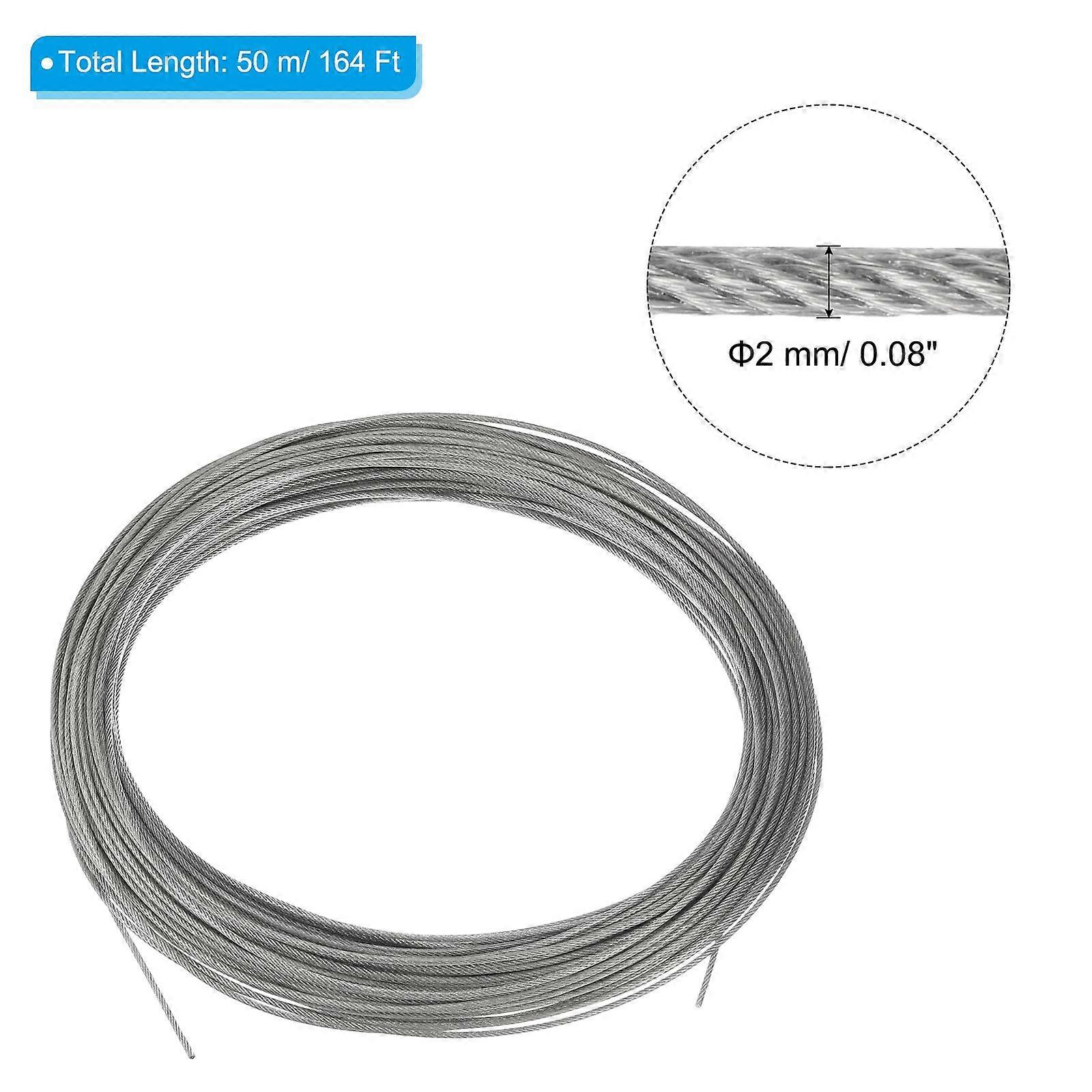 2/25" OD 164 Ft 304 Stainless Steel Cable Wire Rope with Aluminum Sleeves 7 x 7