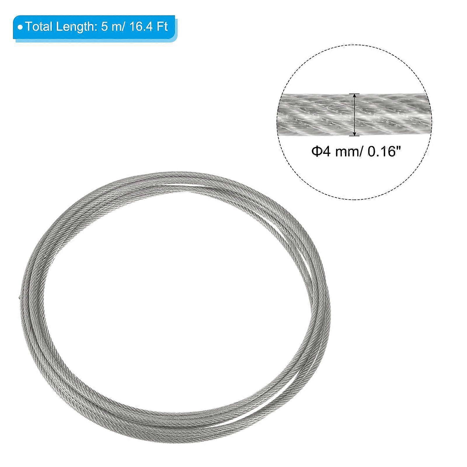 4/25" OD 16.4 Ft 304 Stainless Steel Cable Wire Rope with Aluminum Sleeves 7 x 7