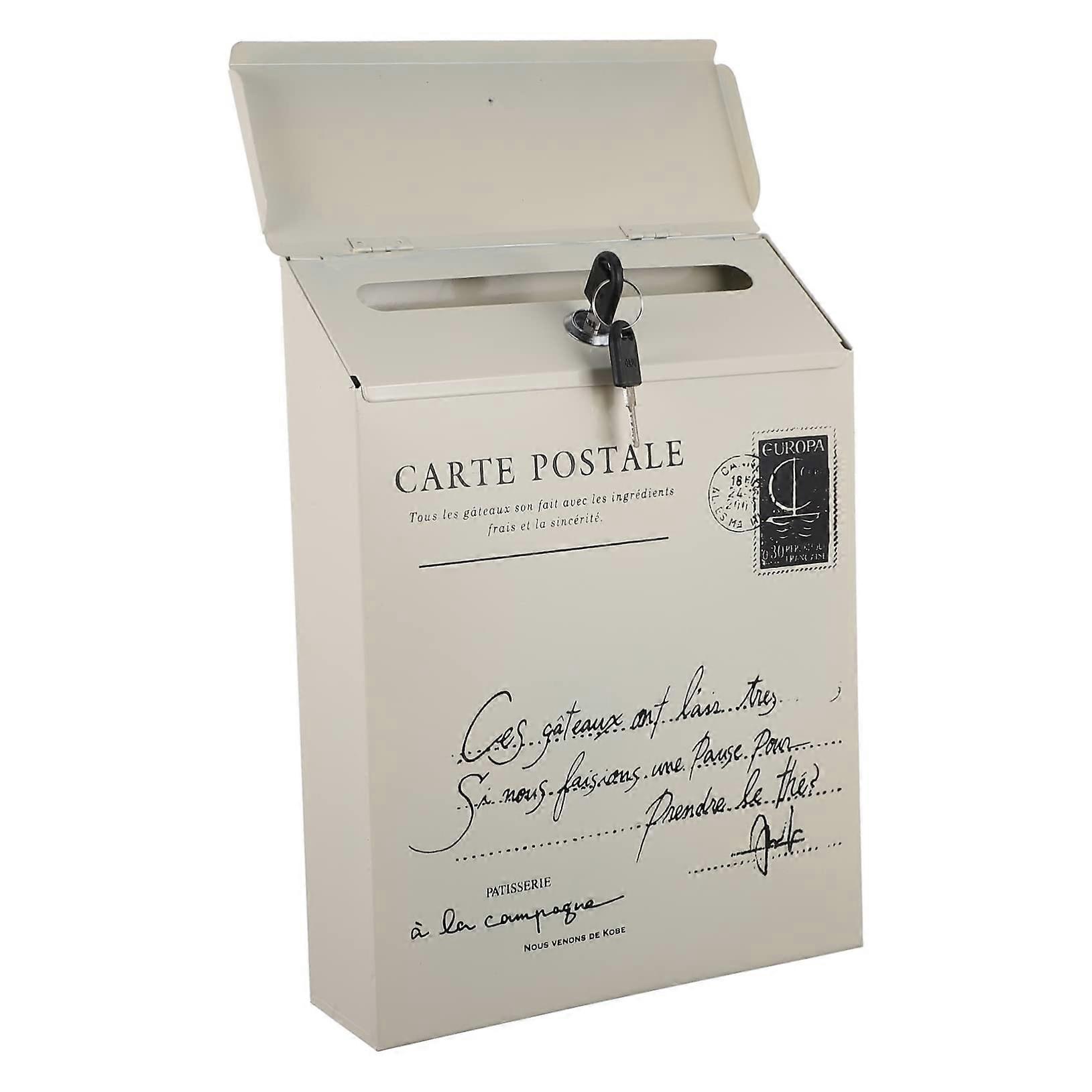 Vintage Wall Mounted Locking Mailbox Rustic Iron Letter Box with Key Retro Style for Home or Office