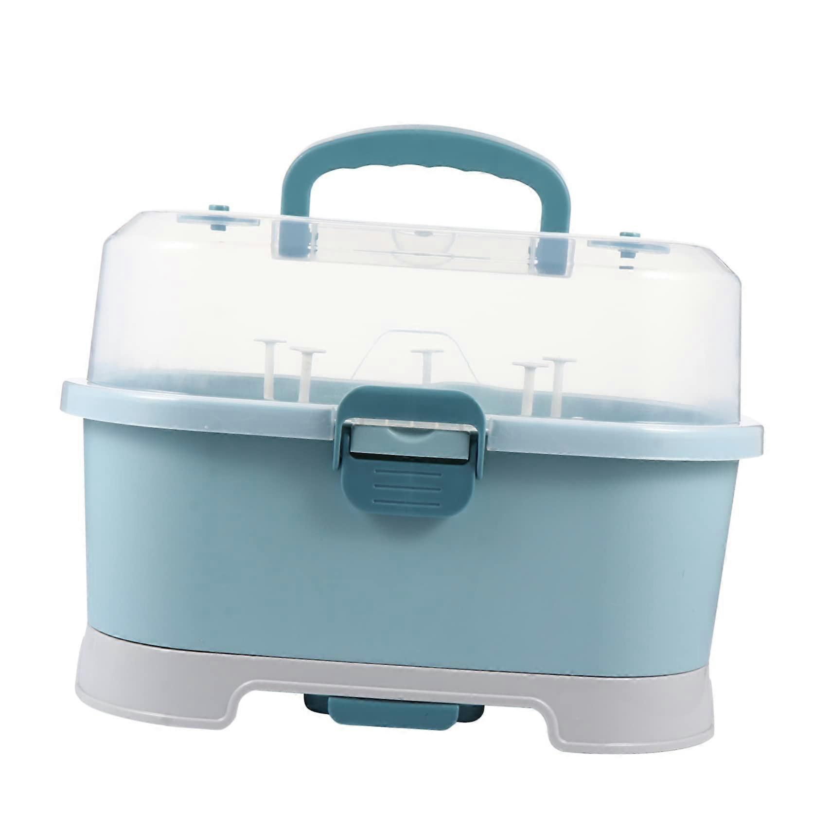 Baby Bottle Drying Rack with DustProof Lid, Detachable PP Organizer Box in Deep Sea Blue