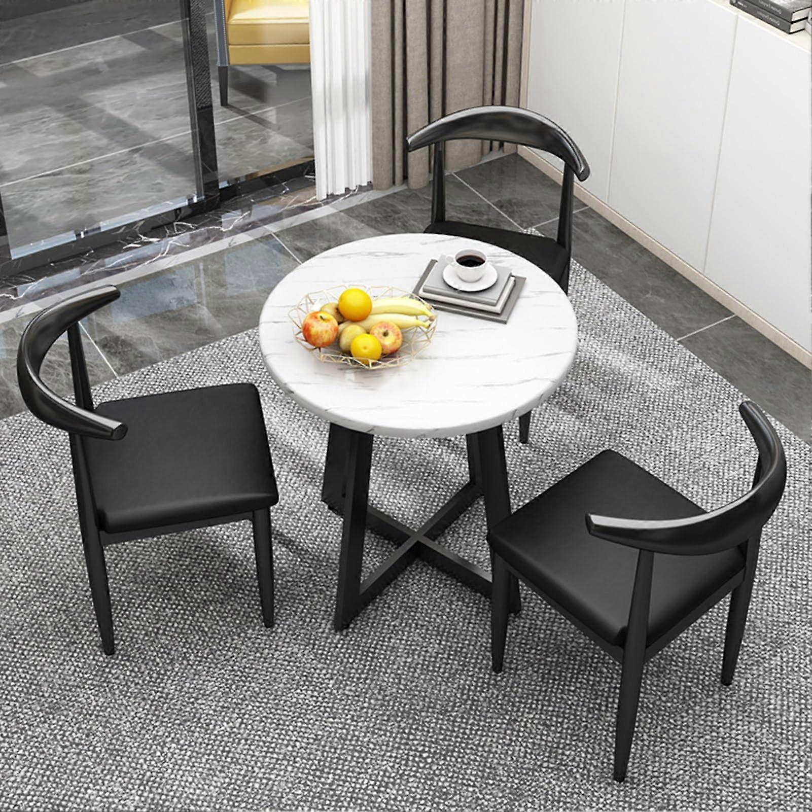 Modern Office Table and Chair Set with 3 Comfortable Leather Seats, SpaceSaving Round Design, Grey
