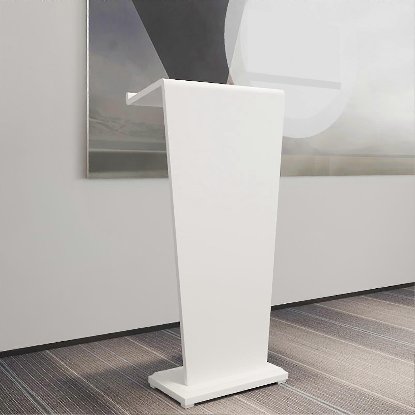 Solid Wood Podium Stand with Wheels, White Heavy Duty Reception Desk Lectern for Church and Office