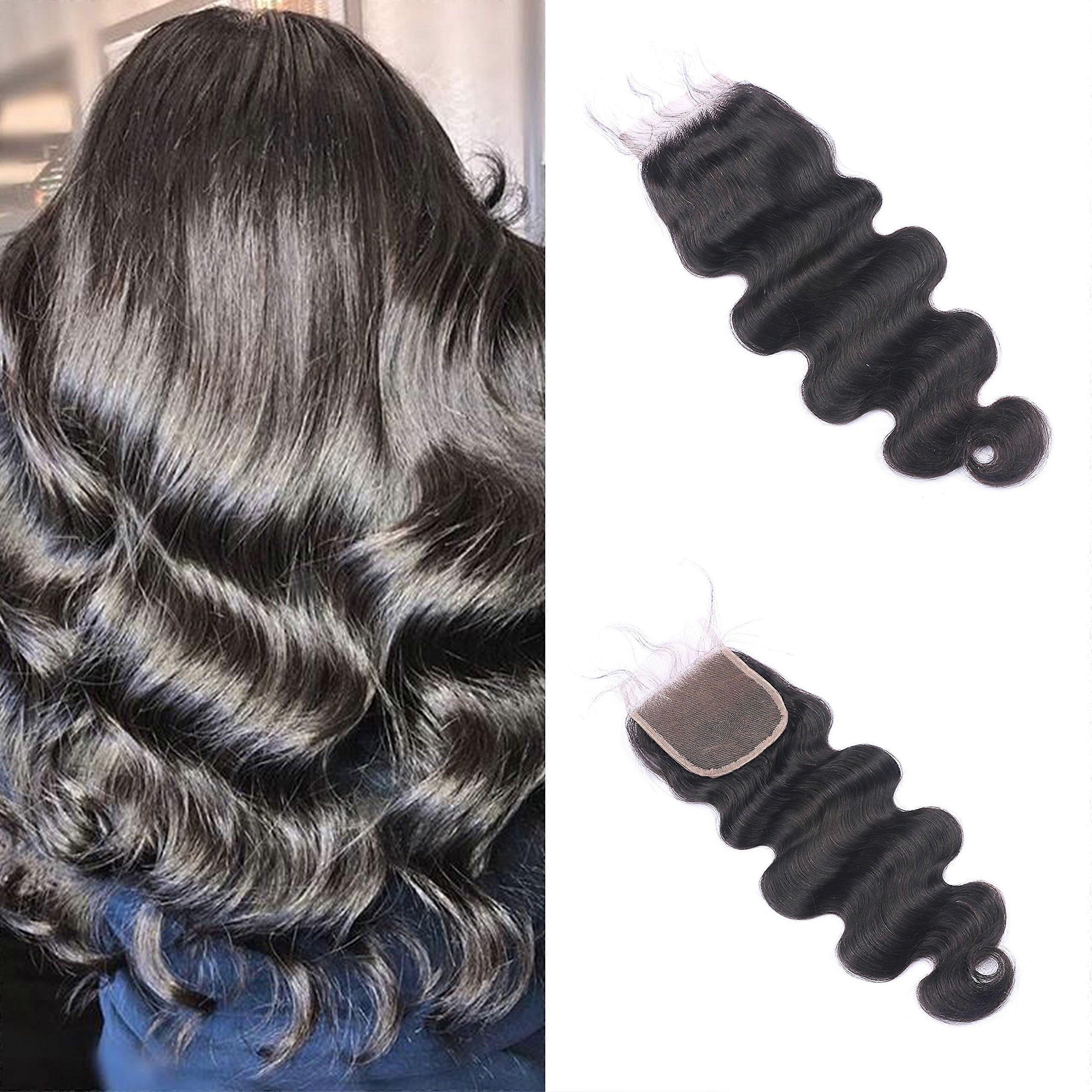 Brazilian Body Wave Lace Closure 4x4 Bleached Knots Virgin Human Hair with Baby Hair 12 Inch