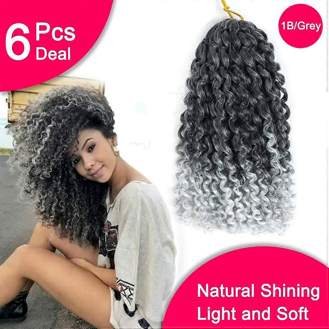 8 Inch Kinky Curly Crochet Hair Extensions Synthetic 1B Grey Short Braids Pack of 6 Bundles