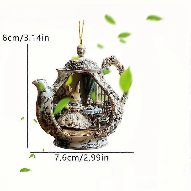 Lovely Easter Bunny in Teacup Acrylic Pendant for Backpack, Car, Home