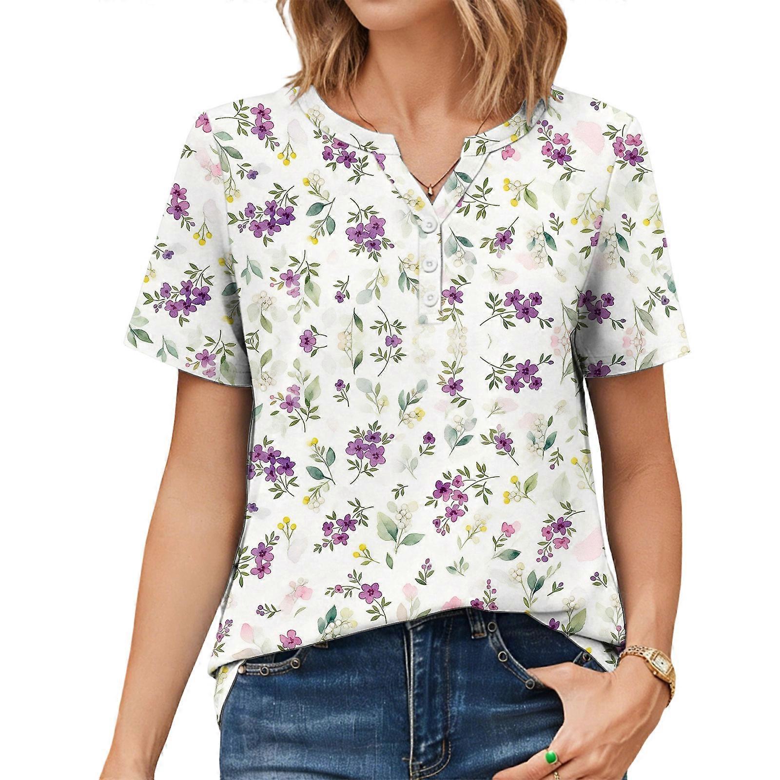 Womens Tops V Neck Short Sleeve Shirts Casual Blouse Vacation Tshirts Clothes Lavender XL