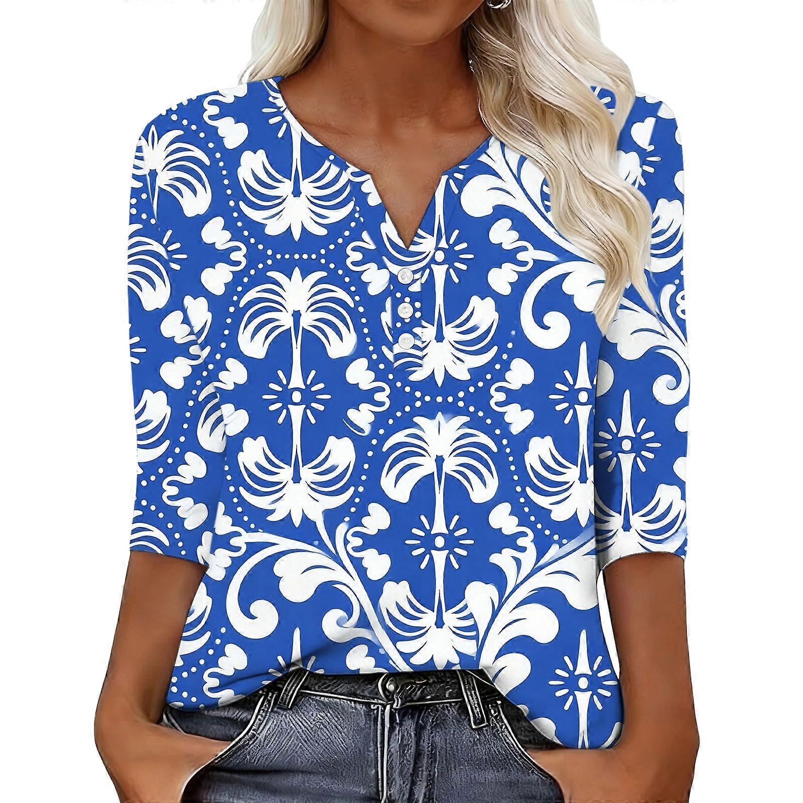 Women's sleeve V-neck T-shirts for Spring comfortable, fashionable, stylish holiday shirts Sky Blue XL