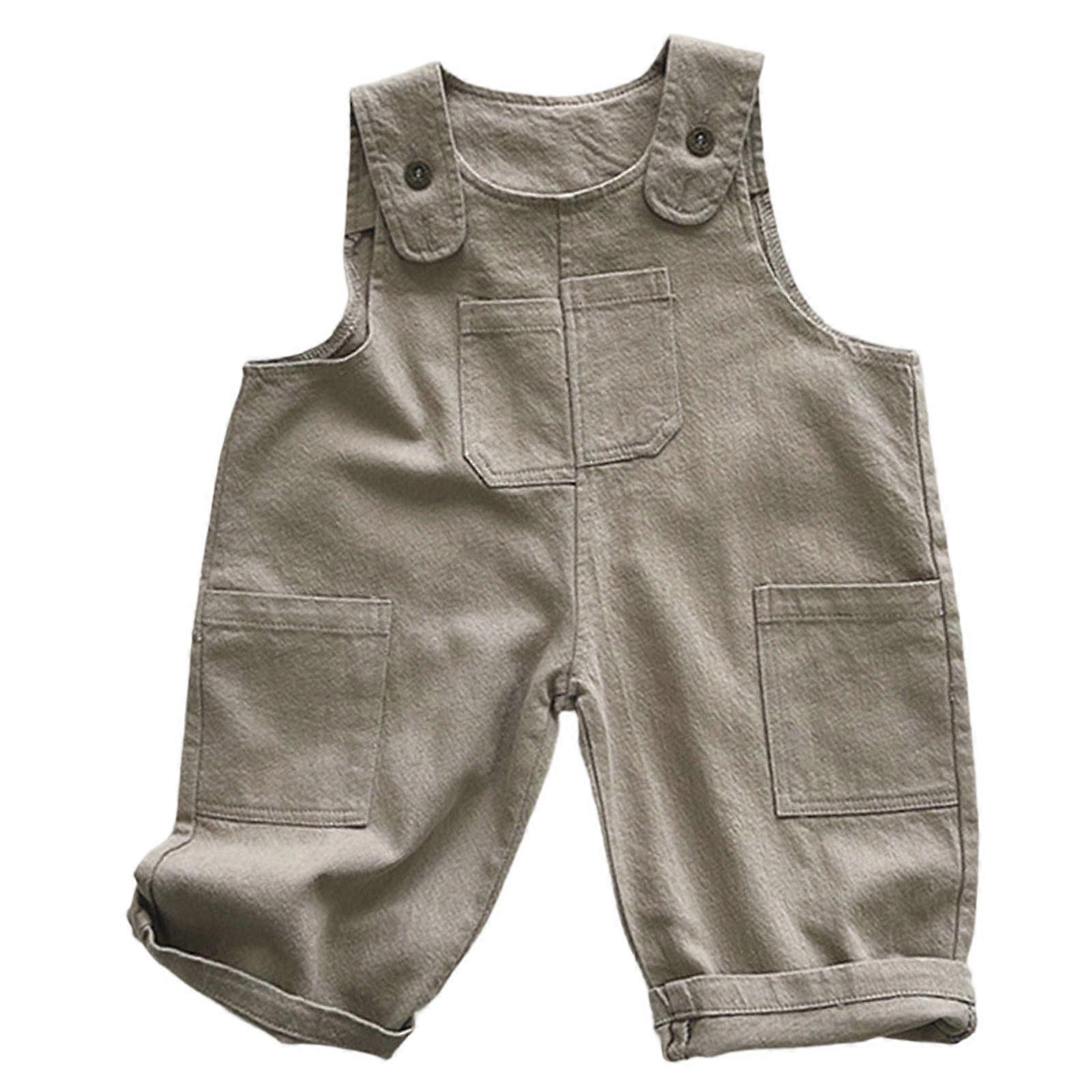 Casual Pants for Toddler Boy Girl Adjustable Unisex Pants Retro Cotton Overalls Spring Autumn Kids Clothing Breathable Khaki 90cm