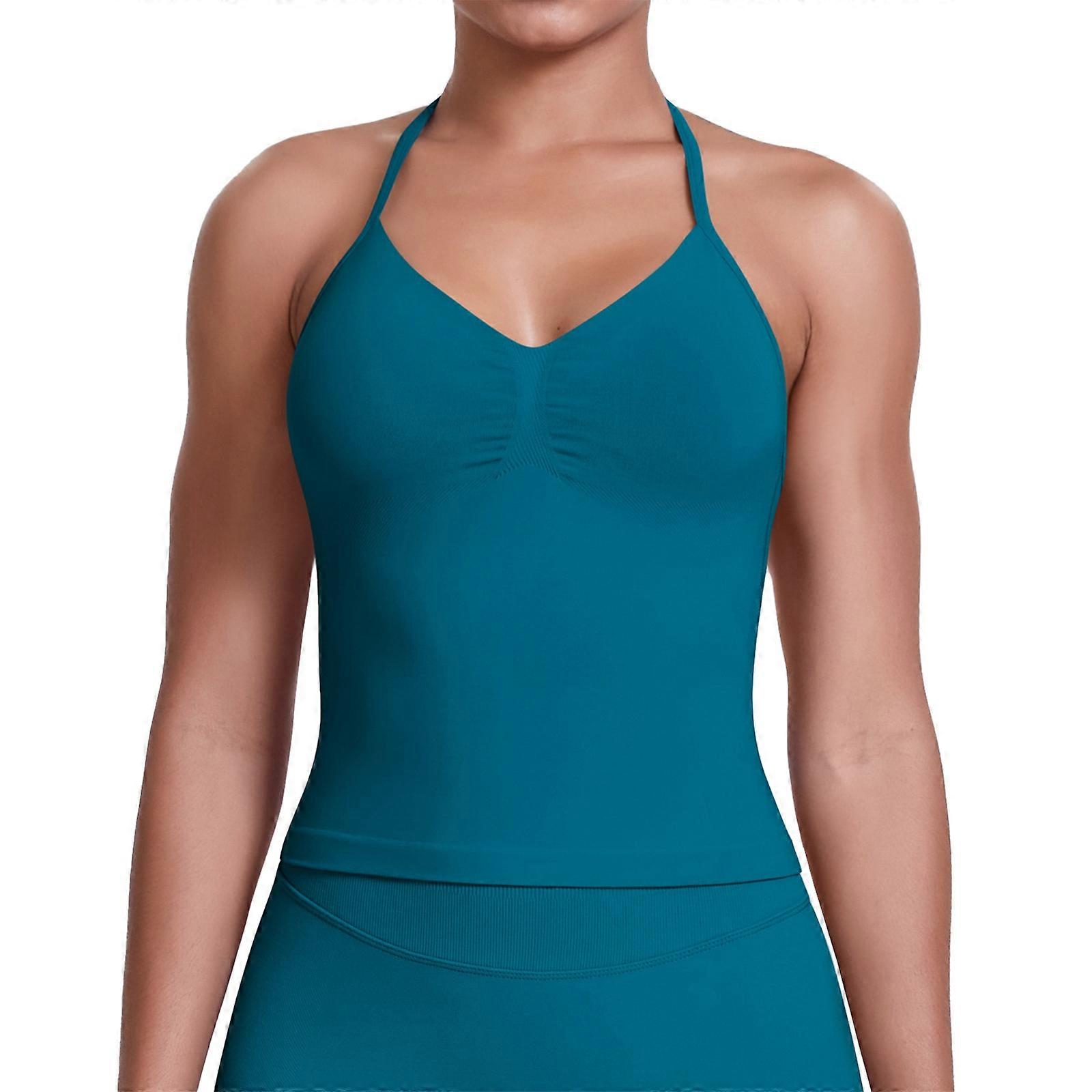 Women’s Longline Strappy Sports Bra Workout Top with Built-in Bra Gym Top 2 Pack Turquoise XS