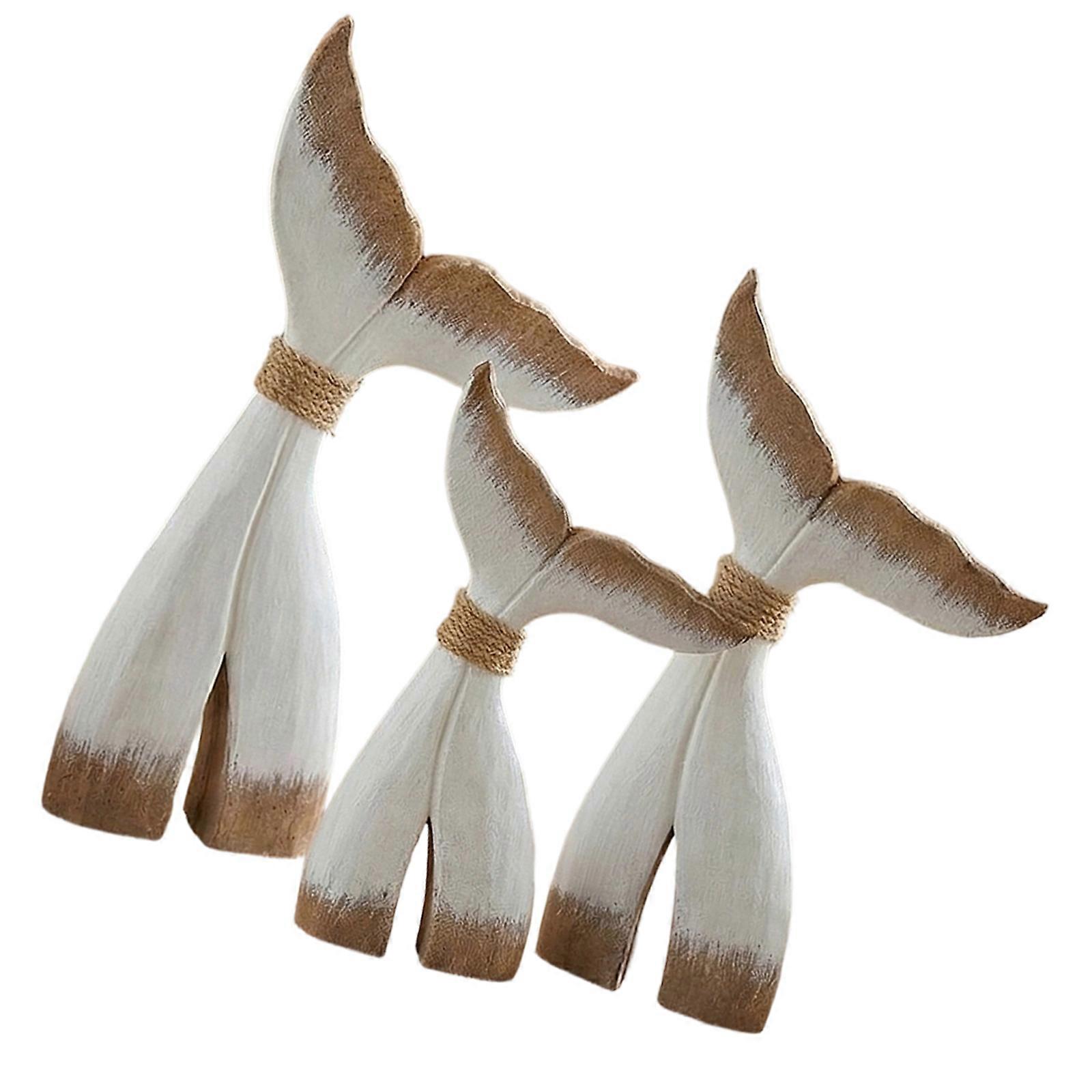Carved Wooden Whale Tail Sculptures Rustics Wood Whale Tail Statues Table Ornament for Beach Mediterranean Home Decors Multicolor