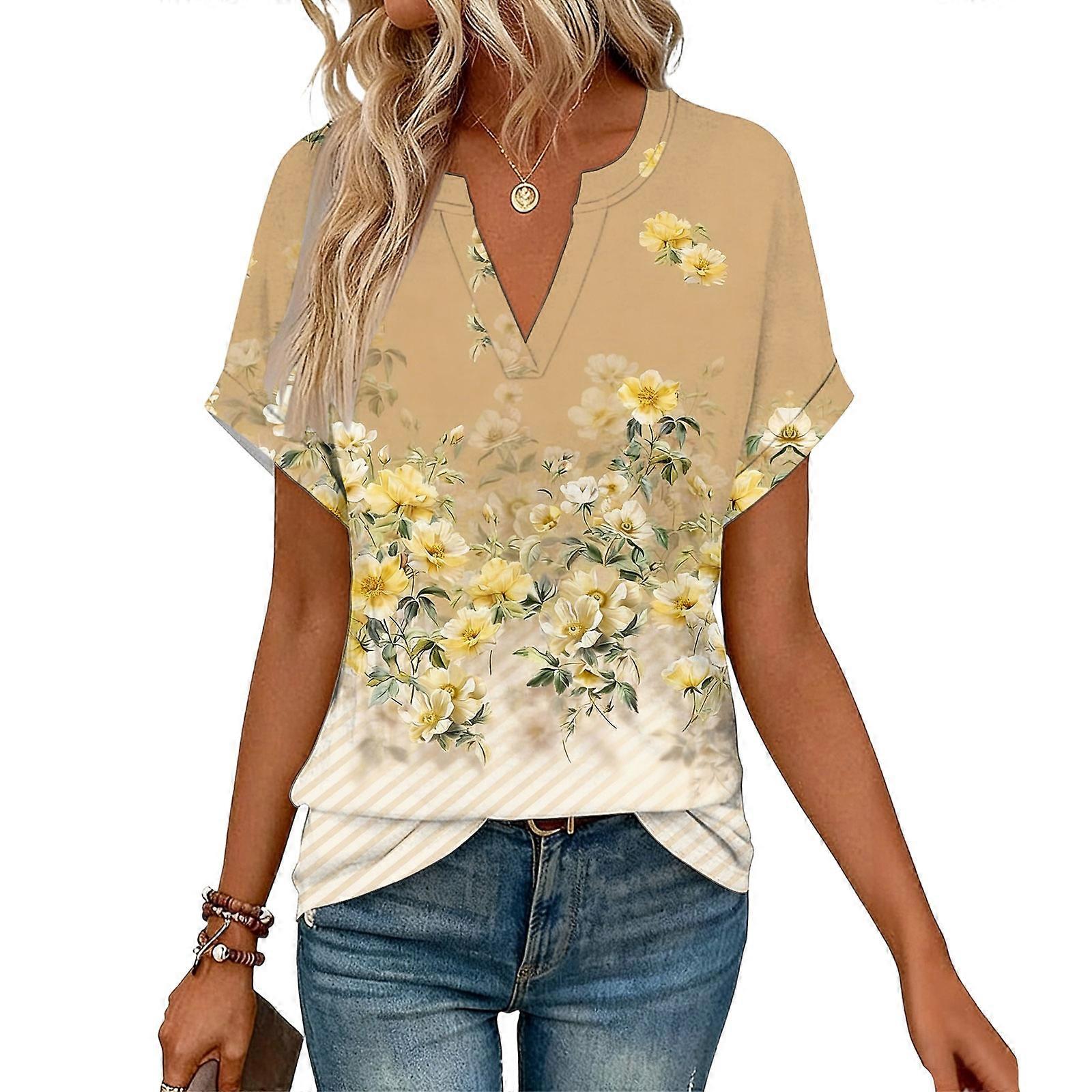 Women's Short Sleeve V-Neck Blouses, Work Blouses, Business Outfits, Fashion Clothing Yellow XL