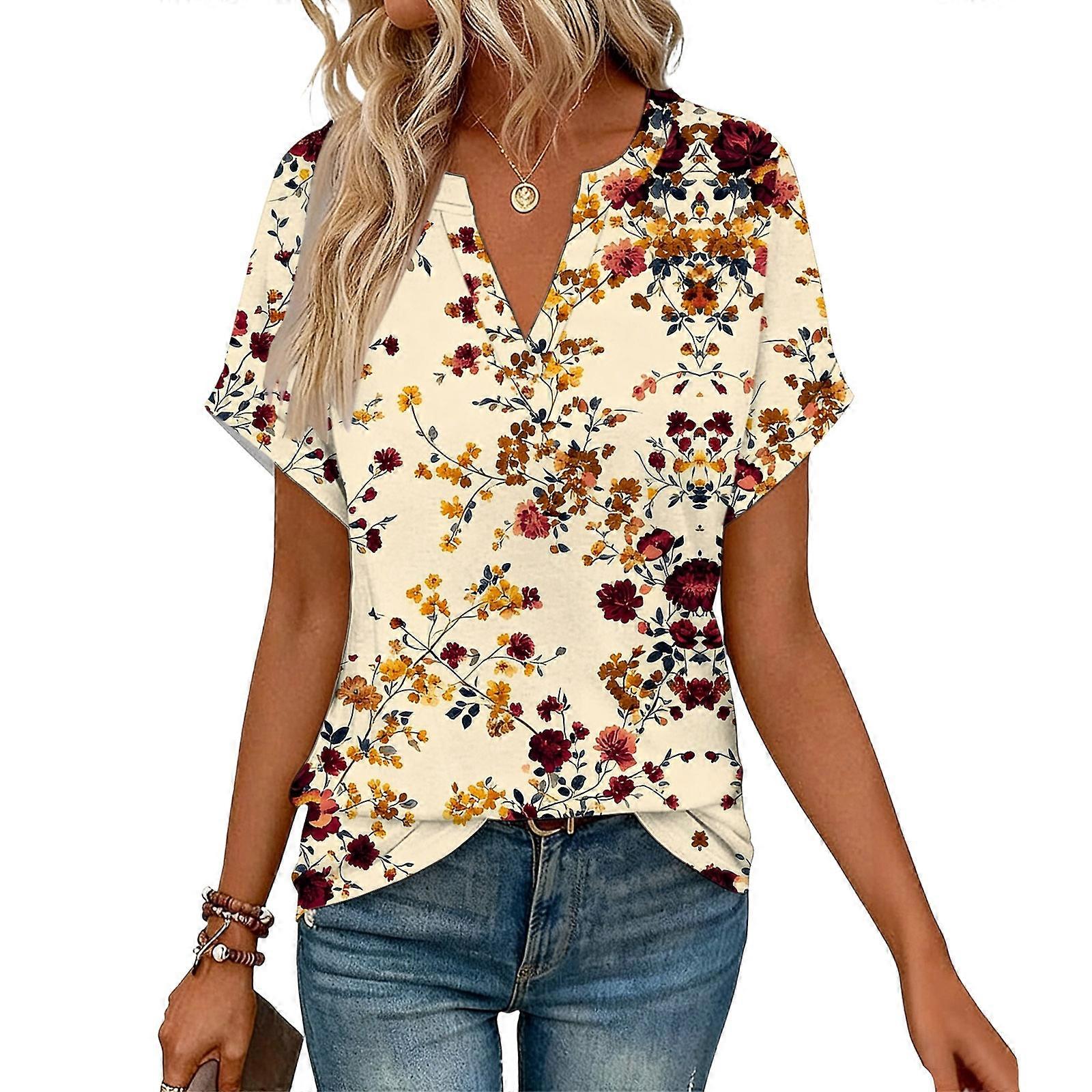 Women's Short Sleeve V-Neck Blouses, Work Blouses, Business Outfits, Fashion Clothing Yellow XL