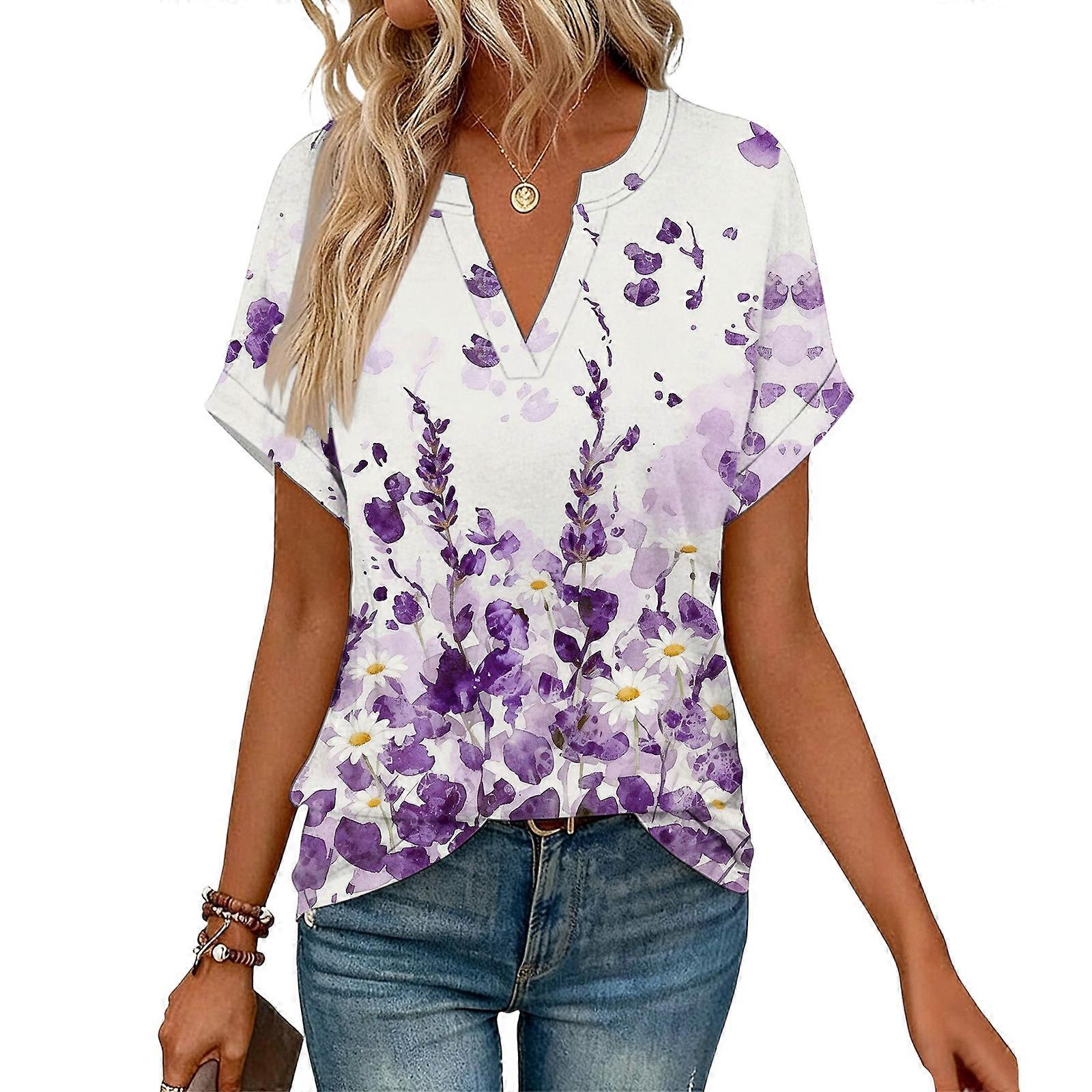 Women's Short Sleeve V-Neck Blouses, Work Blouses, Business Outfits, Fashion Clothing Lavender XL