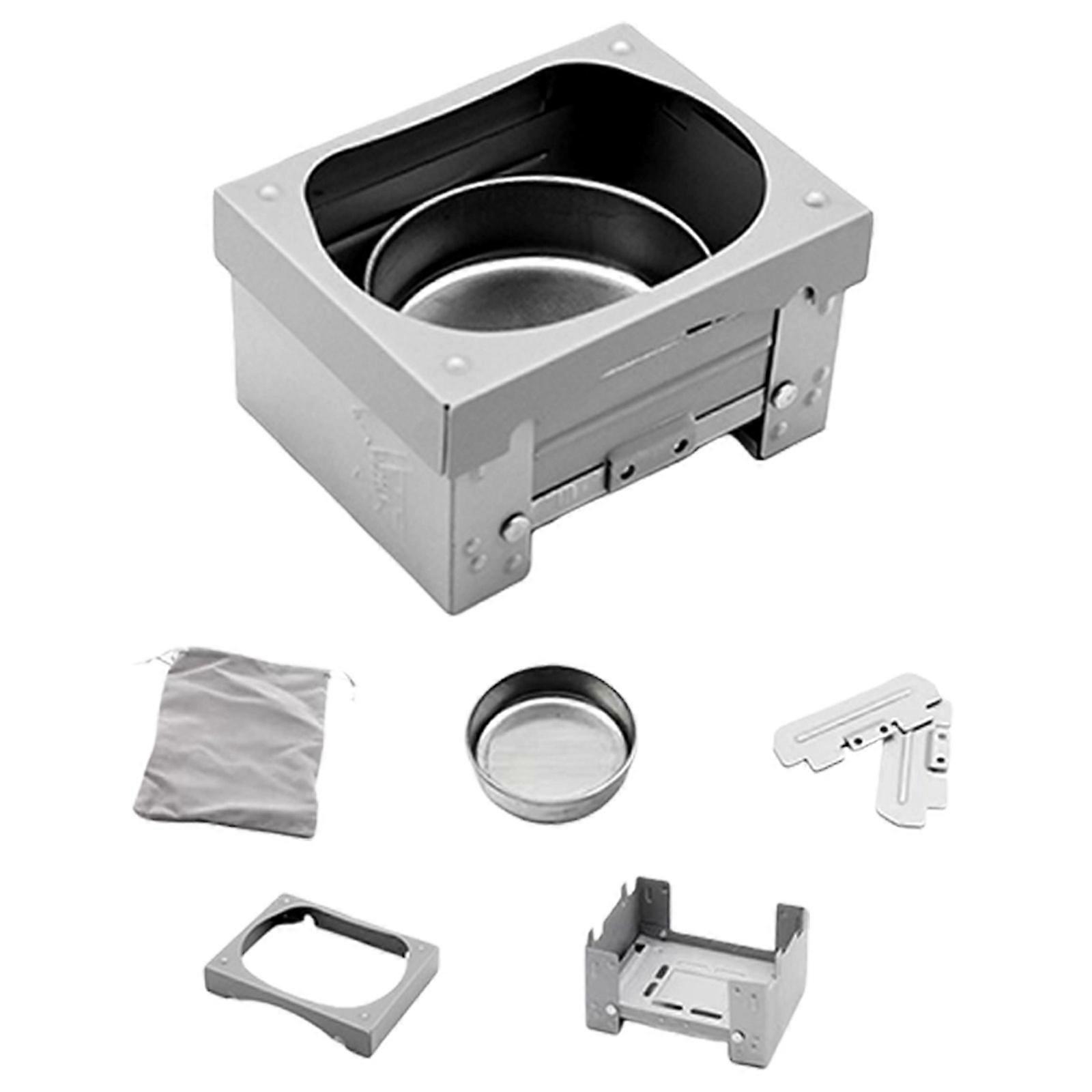 Metal Outdoor Liquid Stove Set Foldable Design Side Panels Lid and Fuels Tray Modular System Metal Texture for Camping Multicolor