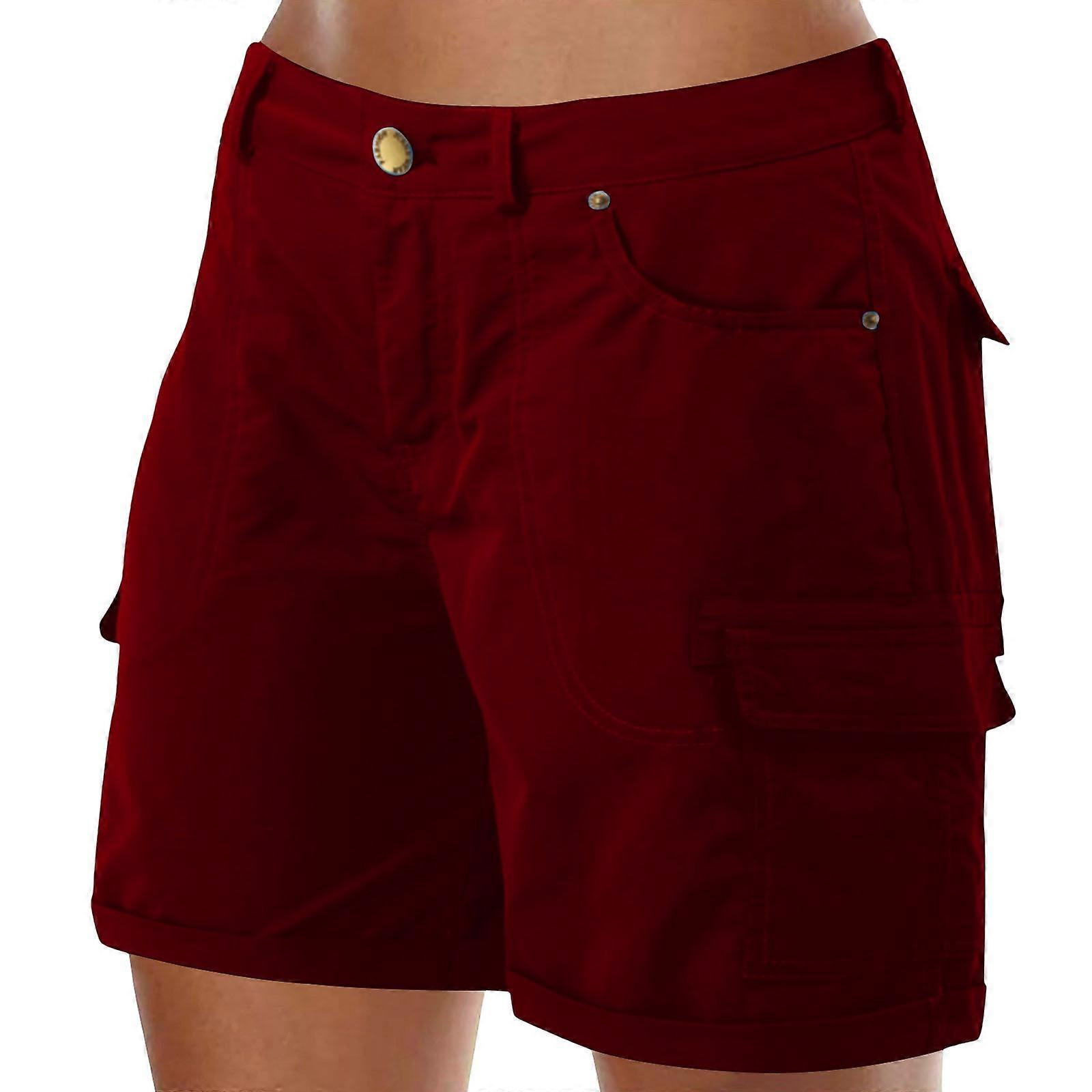 Women's Cargo Shorts High Shorts Casual Trendy Hiking Outfits Knee Length Pant with Pockets Claret XL